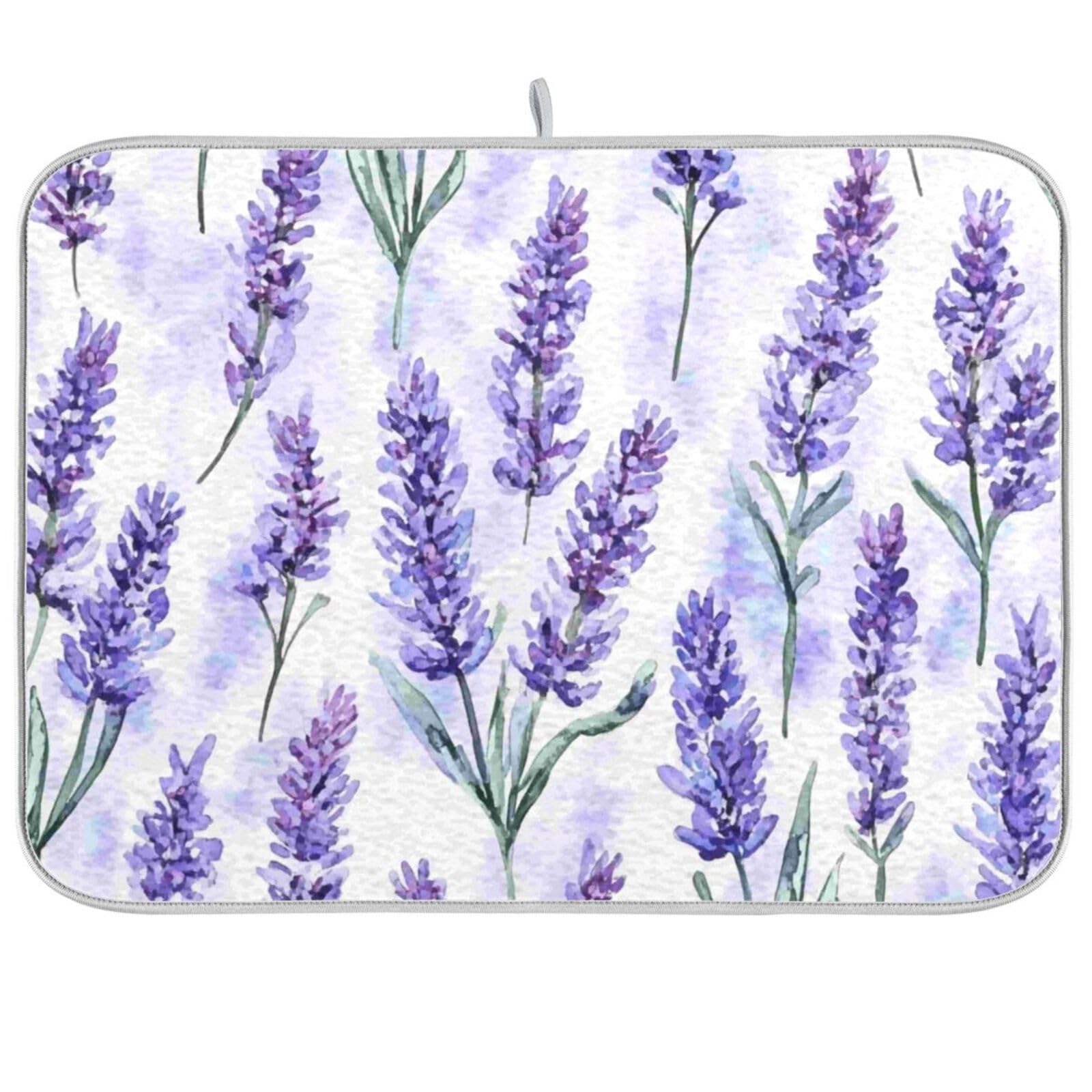 Kcldeci Lavender Flower Dish Drying Mat Kitchen Drying Pad Dish Draining Mat Dish Rack Drainer Pad 16 x 18|Kitchen & Dining