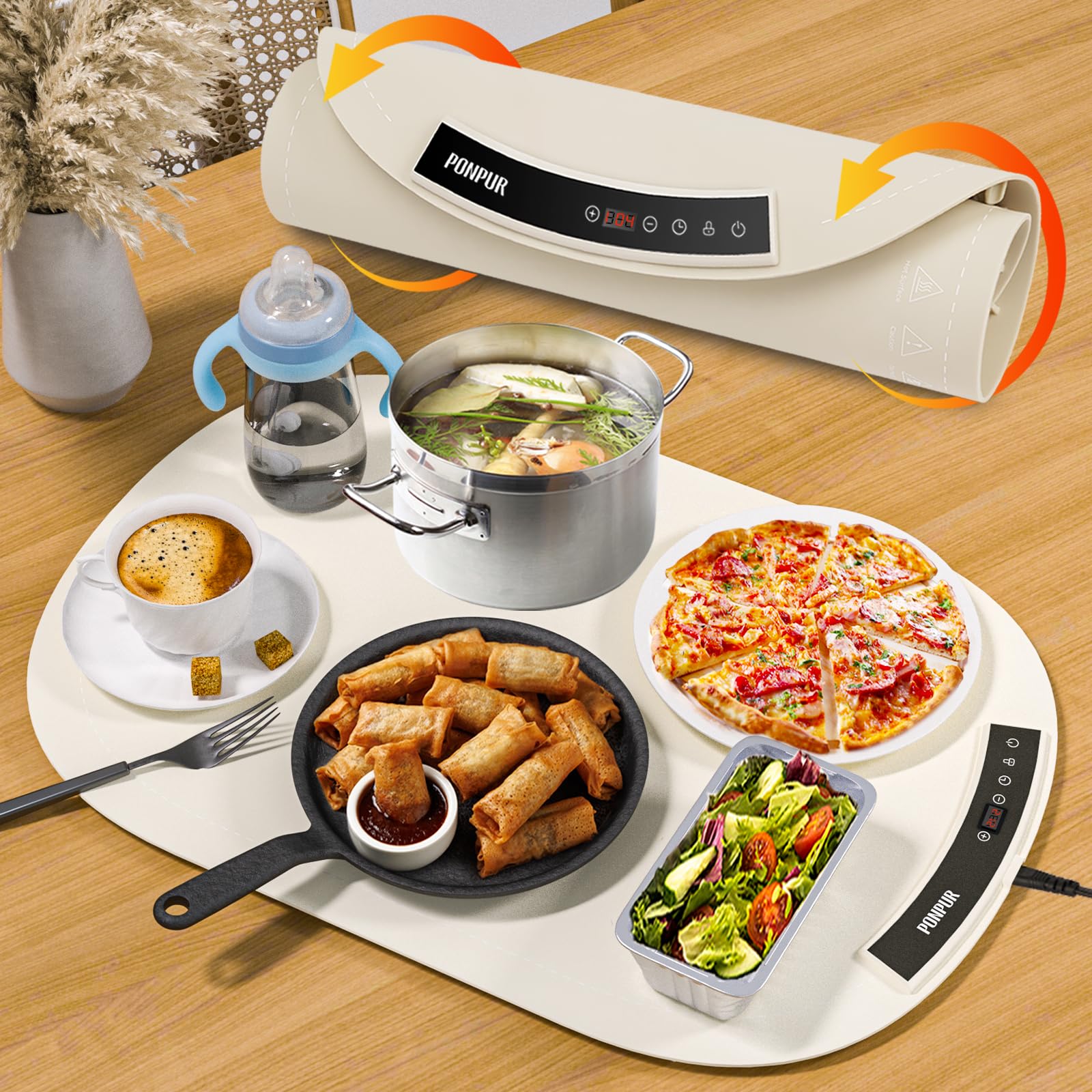 Warming Mat for Food - PONPUR Silicone Food Warmer Electric Warming Tray for Buffets Party, Countertop Heating Mat, 1 2 4H Power Off, 7 Adjustable|Kitchen & Dining