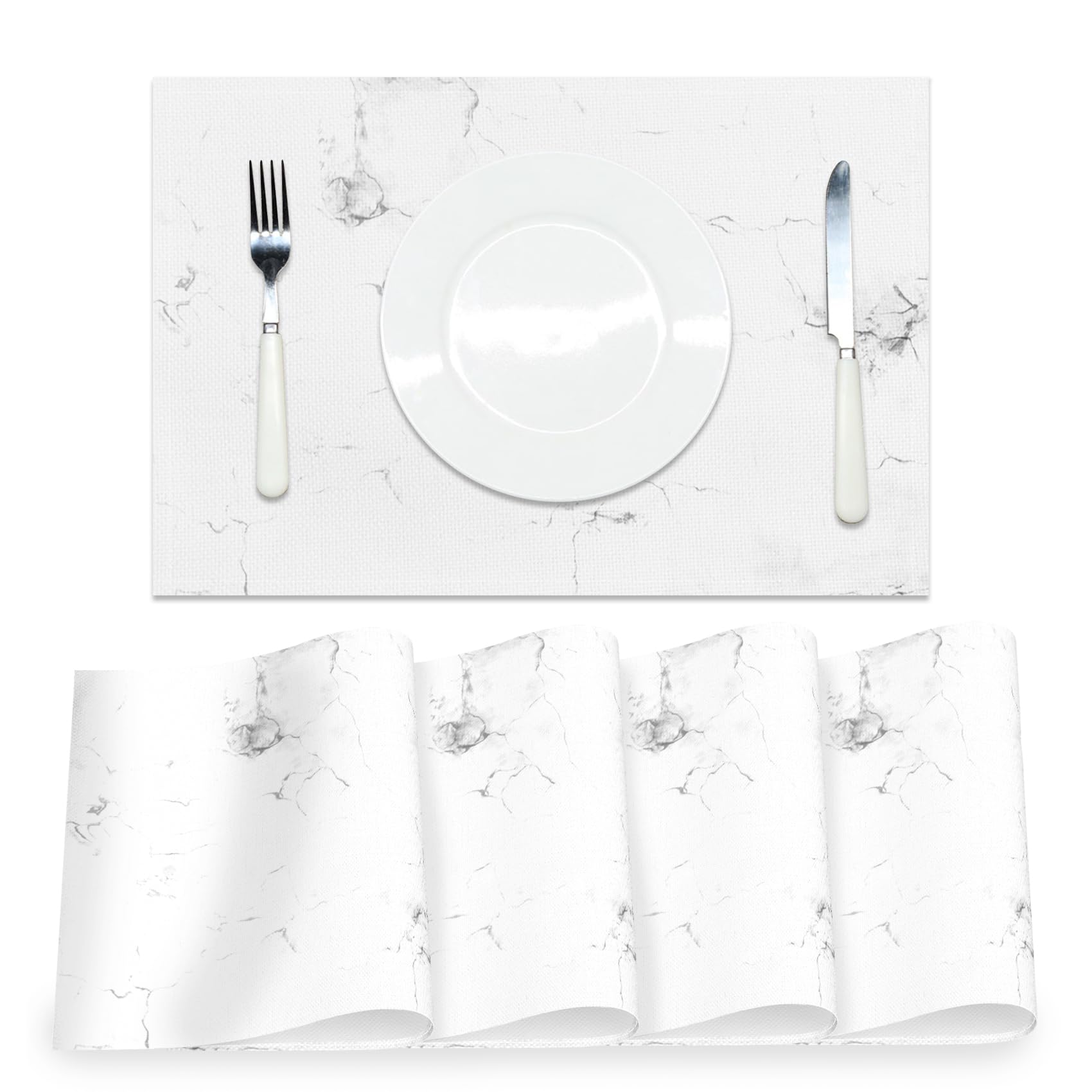 Marble Printed Placemats Set of 4 White Grey Elegant Marbling Place Mats Washable Rectangular Table Mats for Party Home Kitchen Restaurant Dining|Kitchen & Dining