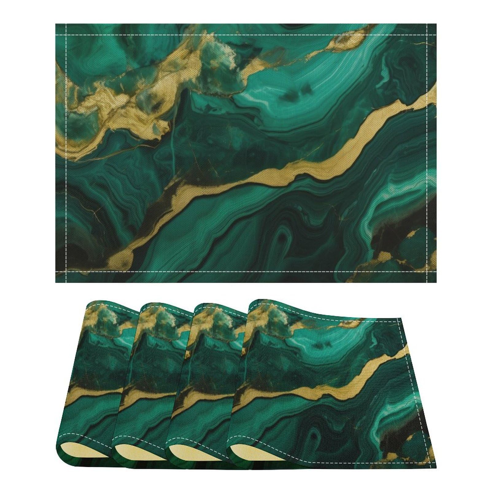 Marble Placemats Set of 6, Emerald Green and Gold Abstract Marble Texture Print Placemats Table Mat for Home Dining Table Kitchen Party Decor 12x18 in|Kitchen & Dining