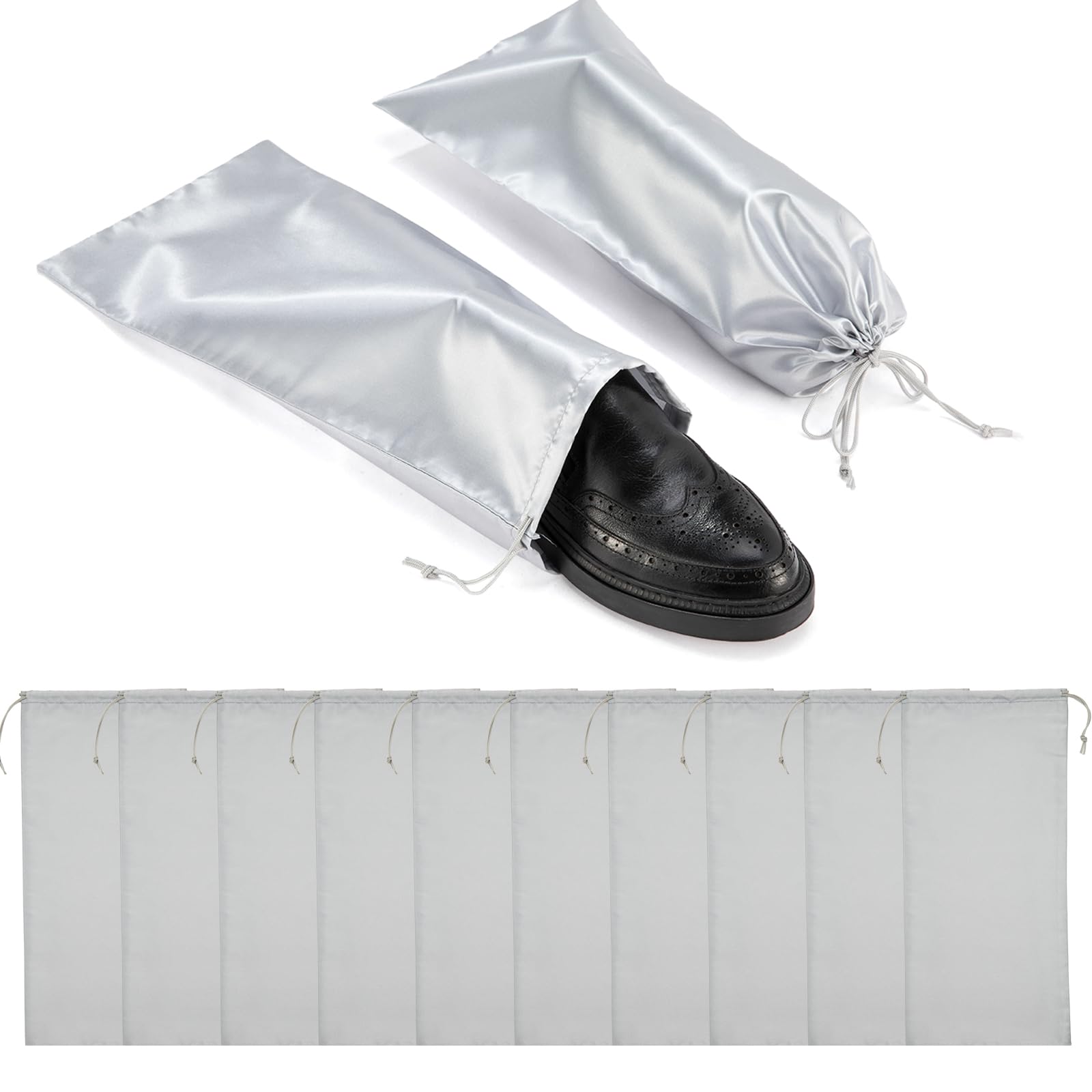 10 Pack Reusable Satin Shoe Bags with Drawstring for Travel - Grey|Luggage & Bags