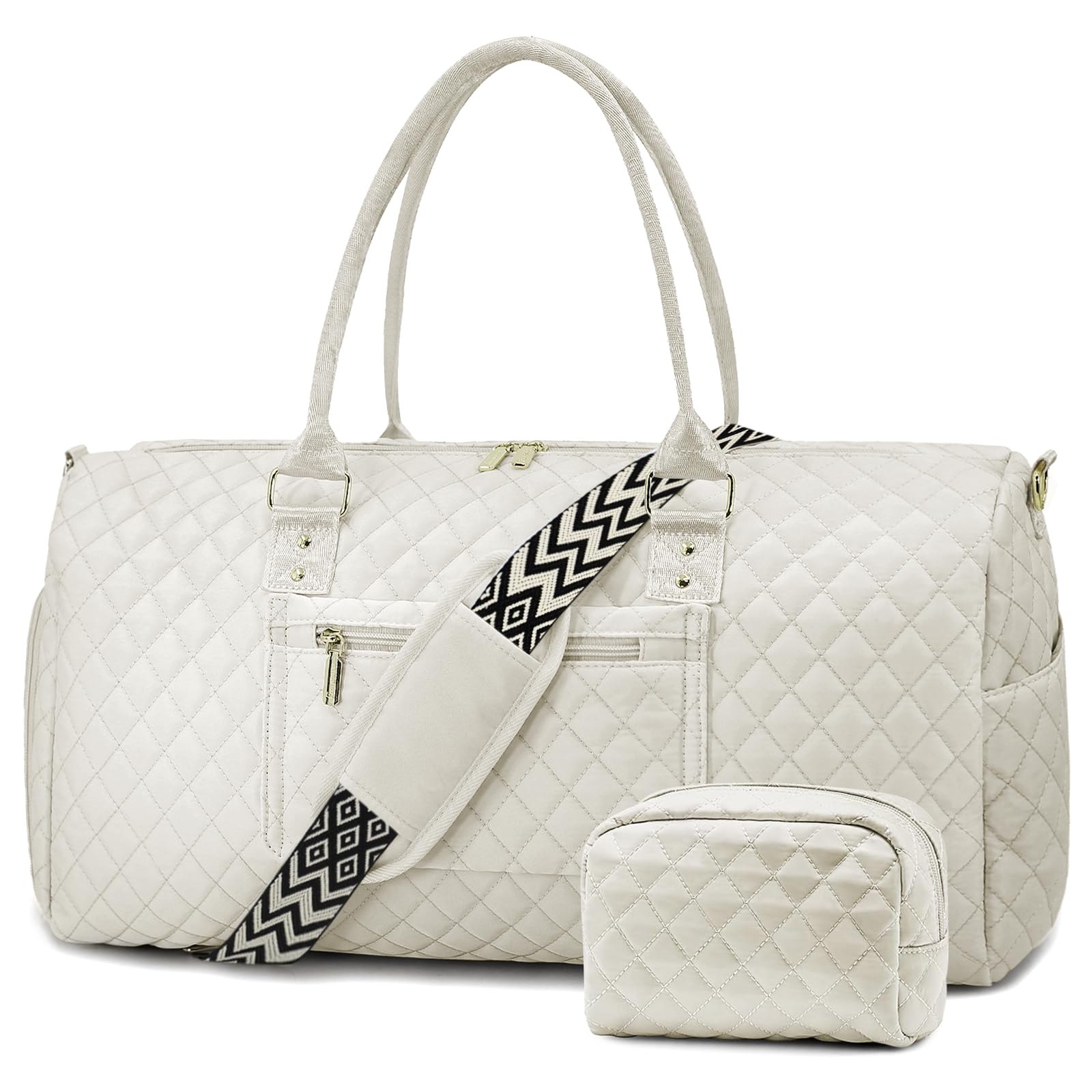 FABIEN CHERON Duffle Bag for Travel,Personal Item Travel Bag with Toiletries Bags,Gym Bags for Men and Women with Wet Pocket & Shoes Compartment(White|Luggage & Bags