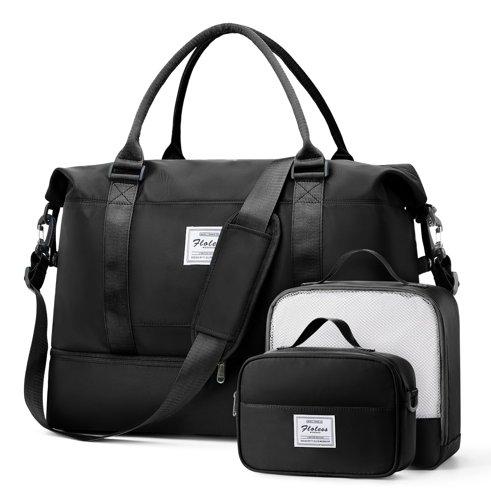 FABIEN CHERON Duffle Bag for Travel,Personal Item Travel Bag with Toiletries Bag,Gym Bags for Men and Women with Wet Pocket & Shoes Compartment(Black)|Luggage & Bags