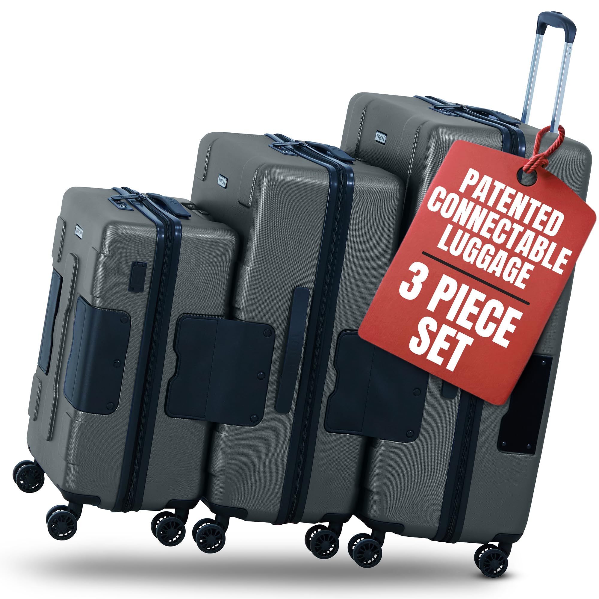 TACH Patented Connecting Hard Shell 3 Piece Luggage Set - 20, 24 & 28 inch Luggage | Carry-On, Medium & Large Rolling Suitcases - Slate Grey|Luggage & Bags