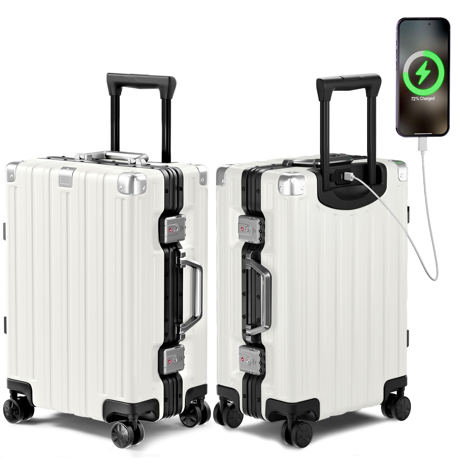 Krute Aluminum Frame Carry On Luggage 20 Inch Zipperless Luggages USB Charger Hardside PC Suitcase With Spinner Wheels Airline Approved Hard Shell|Luggage & Bags