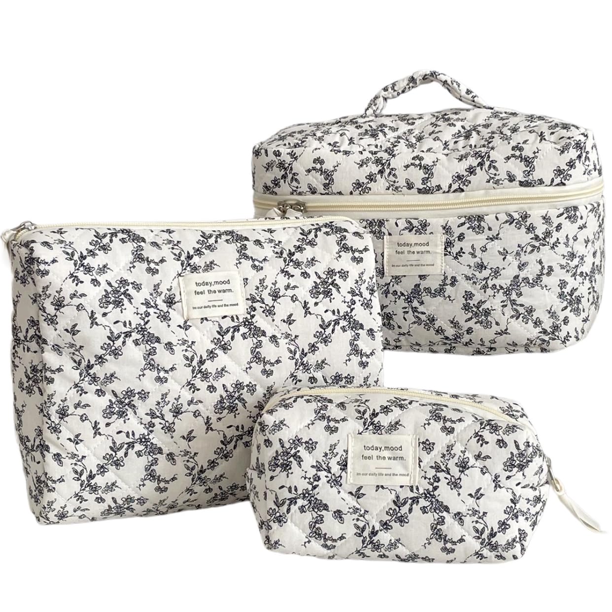 BIVIZKU Large Cute Quilted Makeup Bag, Cotton Cosmetic Bag Set For Women,Cute Travel Toiletry Organizer,Cotton Makeup Pouch, Travel Toiletries|Luggage & Bags