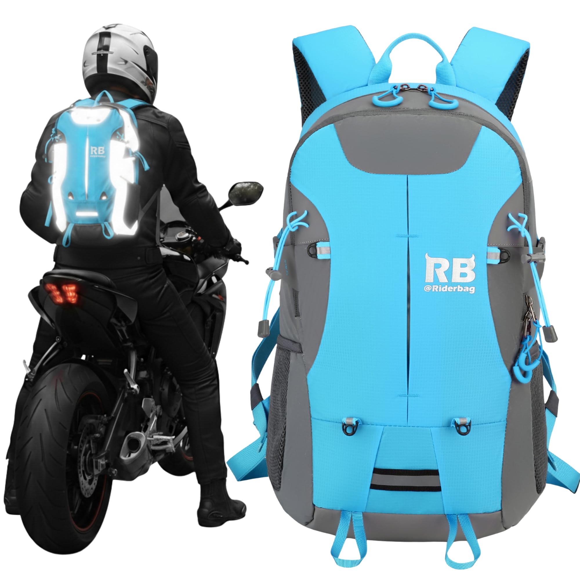 Reflective Motorcycle Backpack – Hi Viz EDC Commuter Bag for Riders, Night Travel, and Daily Use with Helmet Holder, Laptop Compartment, Ventilated|Luggage & Bags