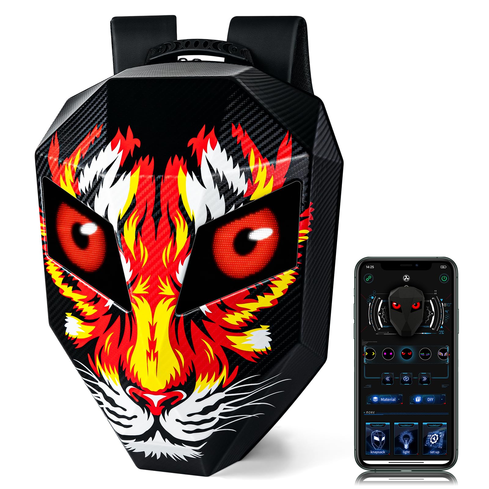 LED Motorcycle Backpack 19", Animated Digital Backpack with Programmable Moving Eyes, Perfect Tech Gear for Style and Fun, Tiger Knight|Luggage & Bags