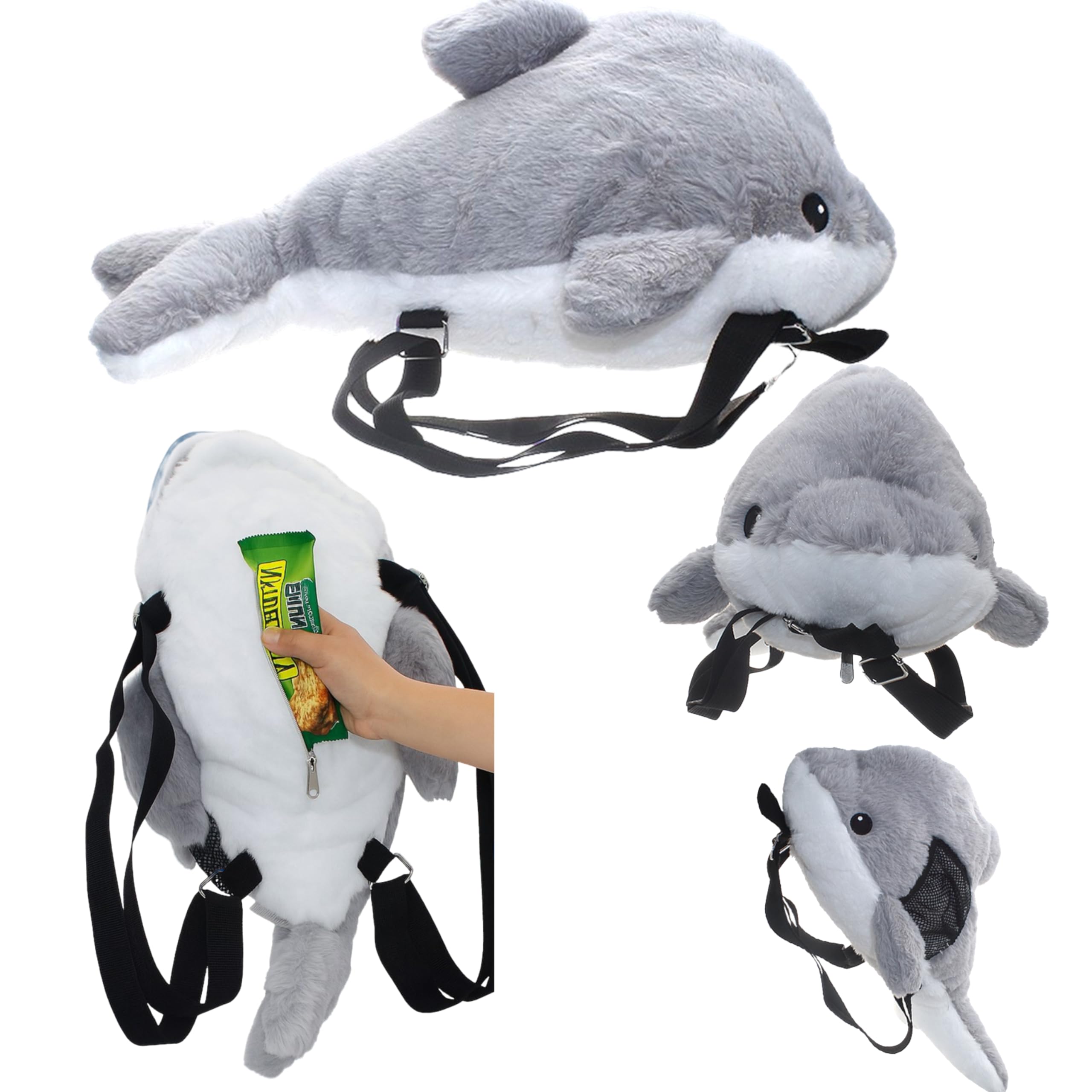 SRM Entertainment Sealife Shark Plush Mini Backpack with Adjustable Strap, Travel Bag for Kids, Plushie Stuffed Animal Toddler Backpack, Cute|Luggage & Bags