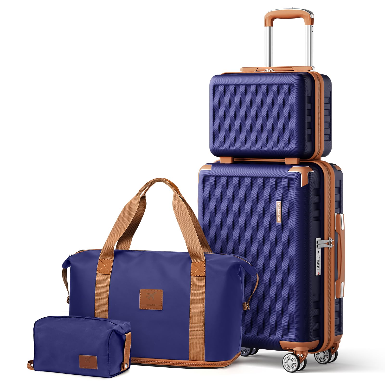 Melalenia Luggage Set 4 Piece Carry On, Hardside Suitcase with TSA Lock and Spinner Wheels, Carry-On Ailline Approved, Navy Brown|Luggage & Bags
