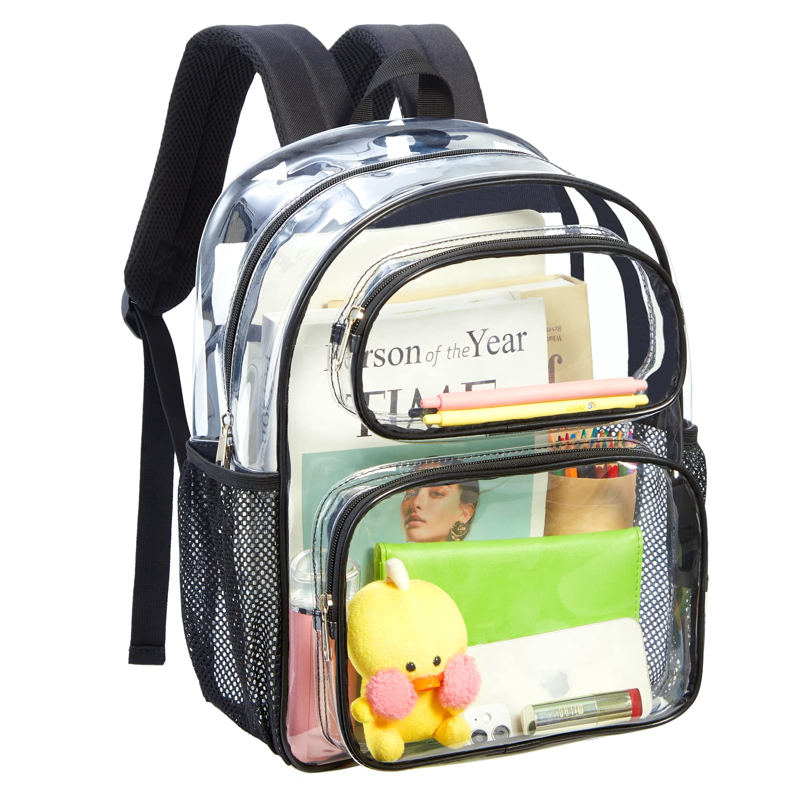 Clearworld Clear Backpack,Transparent Stadium Backpack with Reinforced Bottom & Multi-pockets, See Through Bookbag for Work, Security Check & Sporting|Luggage & Bags