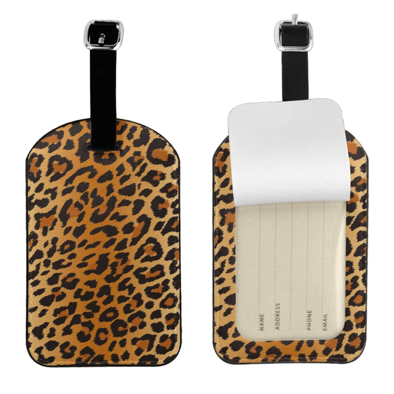 Wansin 2Pcs Luggage Tags for Suitcases Travel Luggage Tag Name Tag Leather Privacy Cover Labels Tags Leopard Print|Luggage & Bags