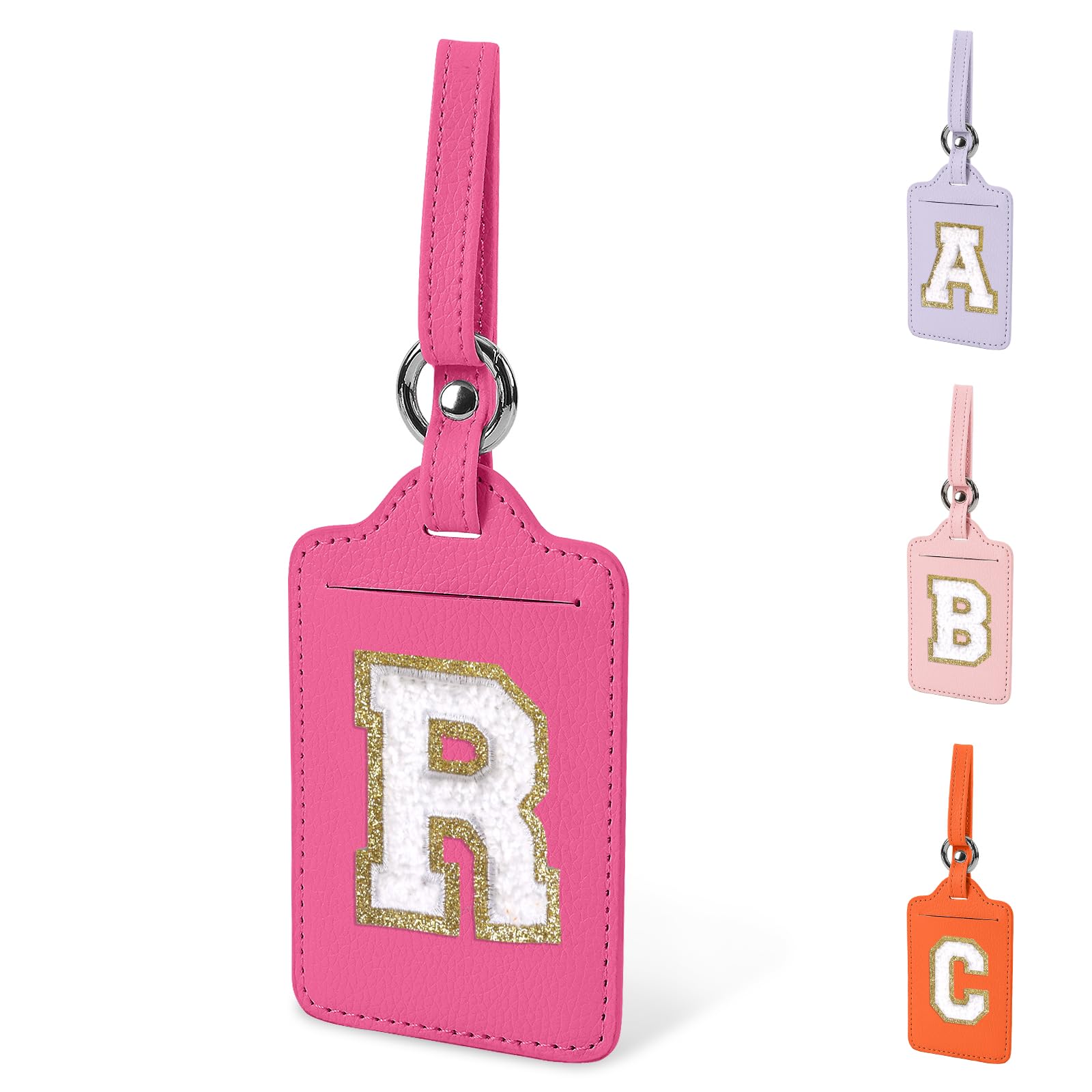 Initial Letter Luggage Tag R for Suitcases, PU Leather Personalized Luggage Tags with Privacy Cover Name Card, Rose Cute Monogrammed Funny Luggage|Luggage & Bags