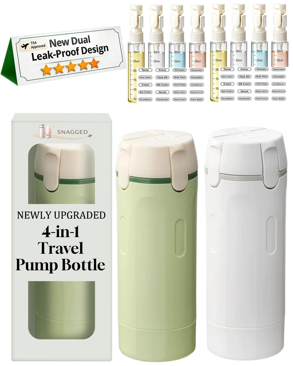 Travel Size Toiletries Bottles for Shampoo Conditioner Lotion Skincare Cosmetic 4 in 1 Pump Dispenser Refillable Squeeze Liquid Containers Essentials|Luggage & Bags