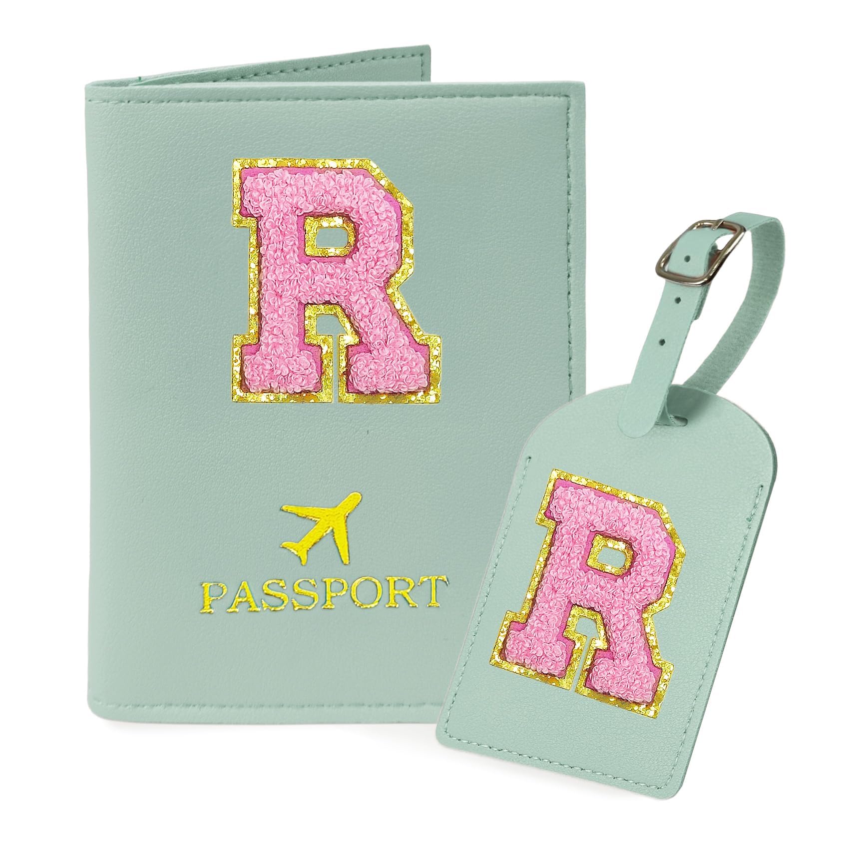 COSHAYSOO Initial Passport Cover Luggage Tag Set Letter Passport Holder Airplane Cruise Travel Essentials Vacation Traveling Accessories Personalized|Luggage & Bags