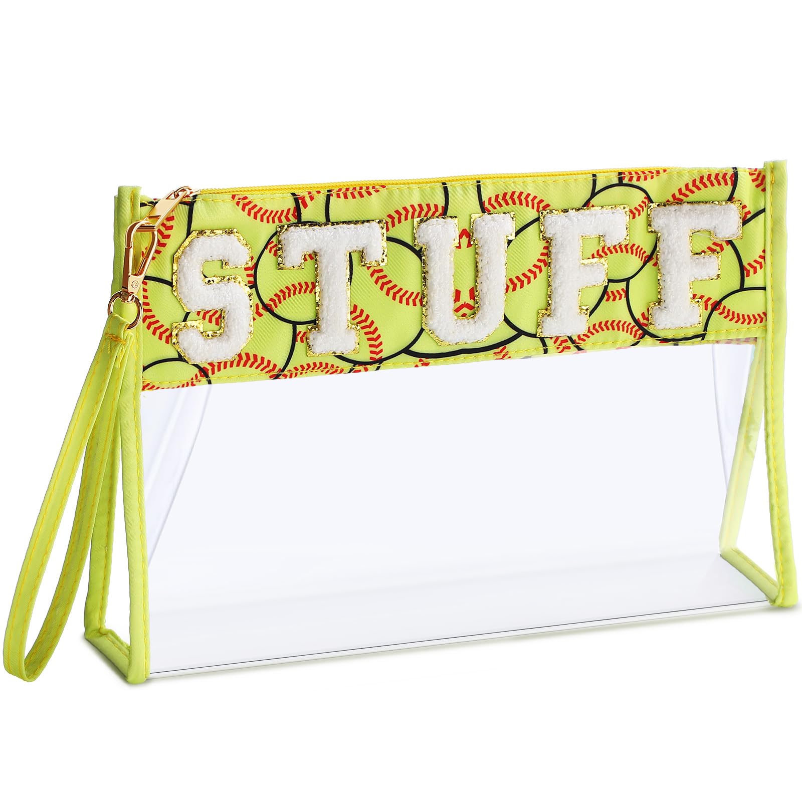 Remerry Clear Chenille Letter Makeup Bag Stand up Snack Bags Preppy Cosmetic Pouch Expandable Clear Travel with Wrist Strap Zipper Portable|Luggage & Bags