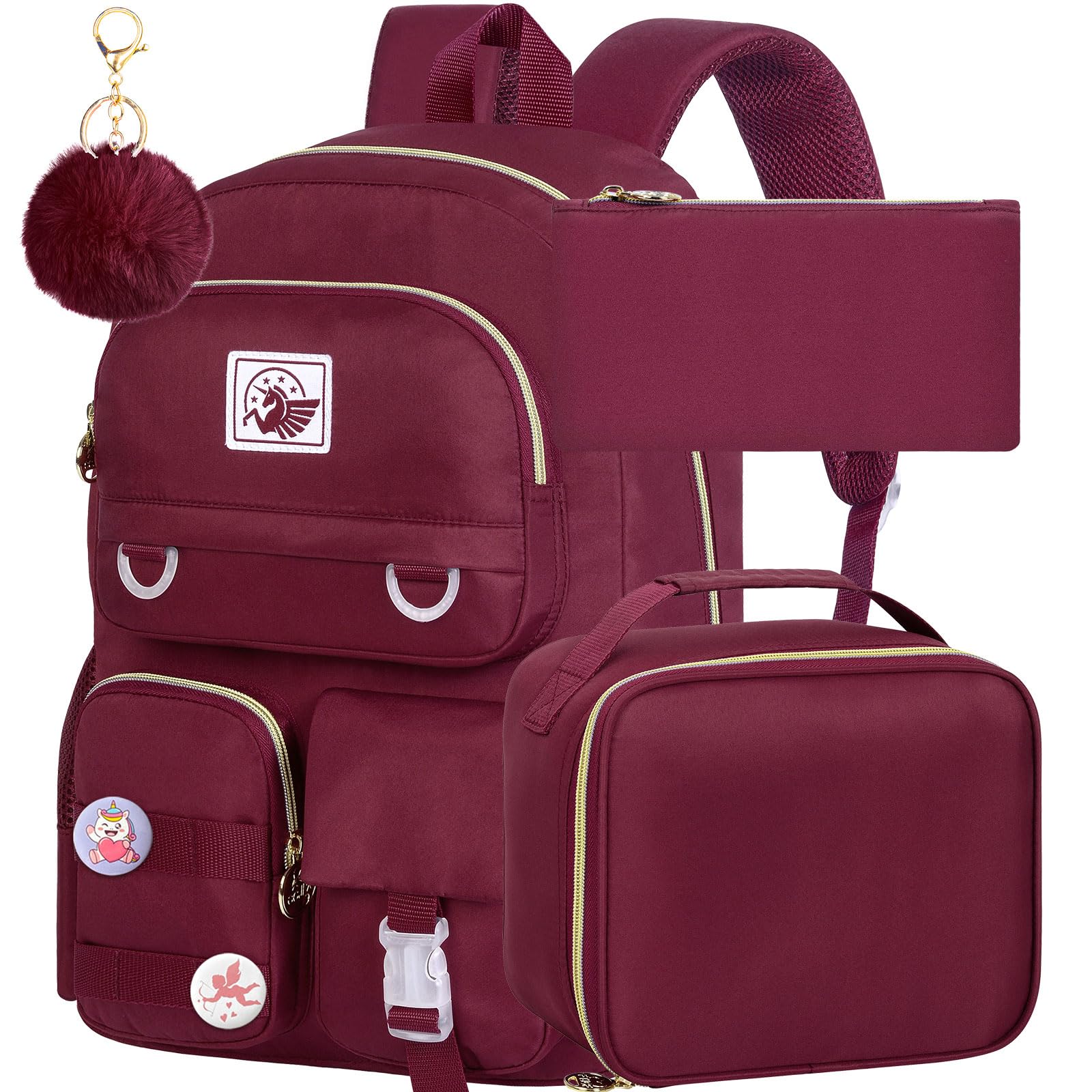 WZLVO 3PCS Laptop Backpack for Girls Women, 15.6" Cute Aesthetic Computer Water Resistant Anti Theft College School Bookbag with Lunch Box for Teens|Luggage & Bags