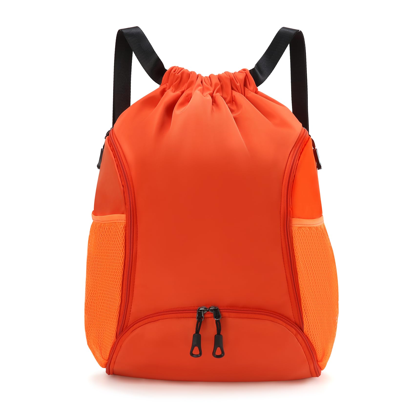 Valleycomfy Sports Gym Bag Drawstring Backpack with Shoes Basketball Bag and Two Water Bottle Holder,Orange|Luggage & Bags