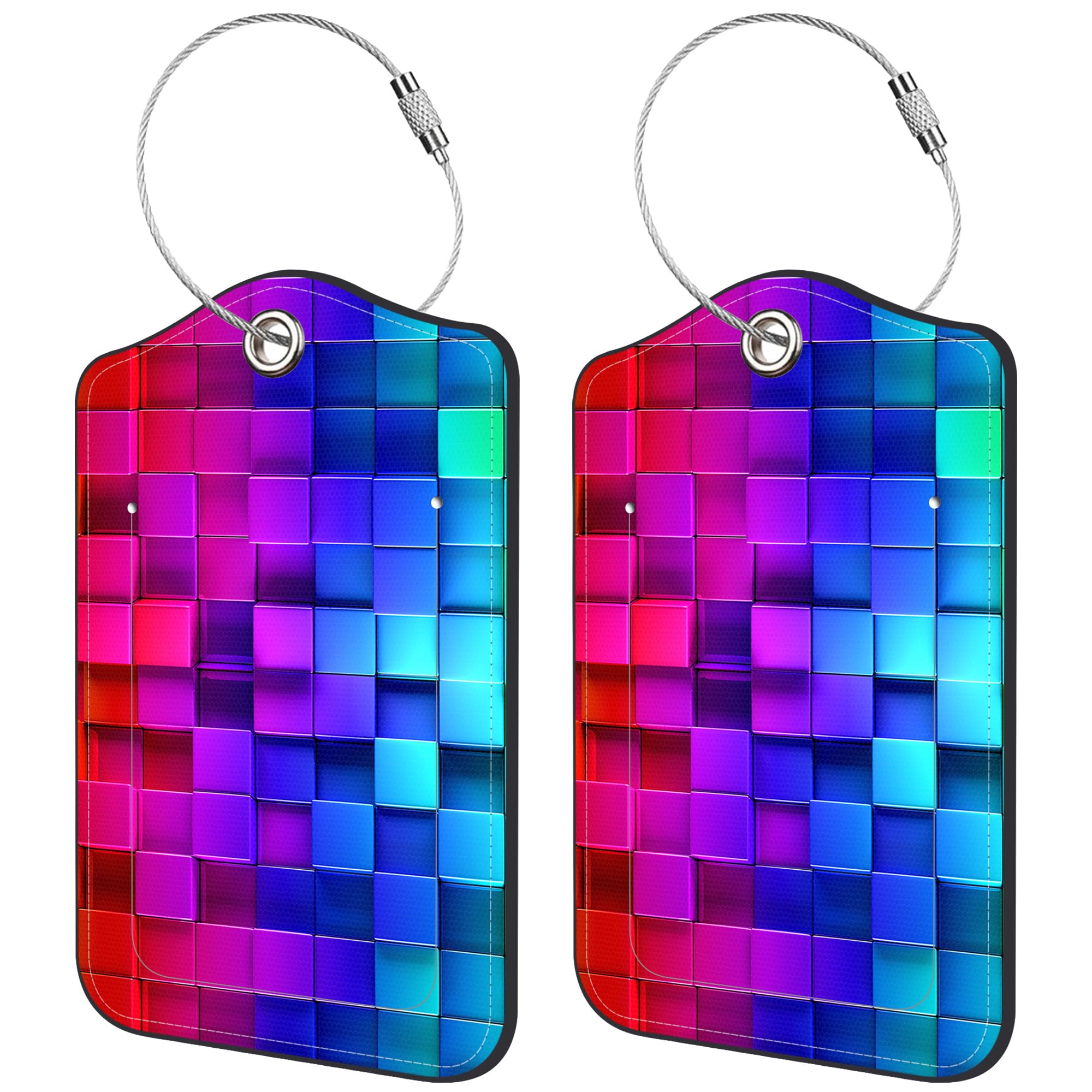 Colorful Blocks Luggage Tag for Suitcase 2 Pack Leather Luggage Tag with Privacy Flap Name ID Label and Metal Loop for Women Men Travel|Luggage & Bags