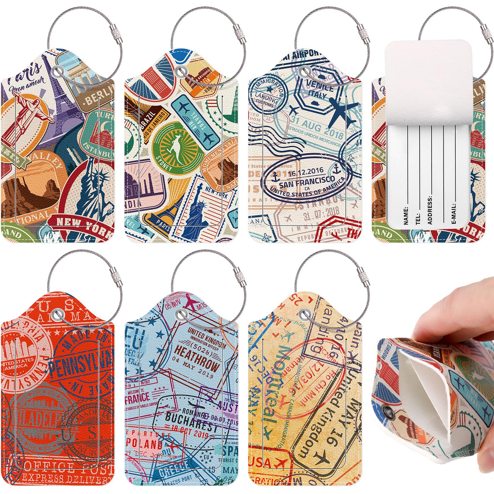 Dansydaisy 6 Pack Travel Stamp Luggage Tags for Suitcases Bulk Funny Luggage Tags PU Leather Suitcase Label with Loop Travel Privacy Name ID Card|Luggage & Bags
