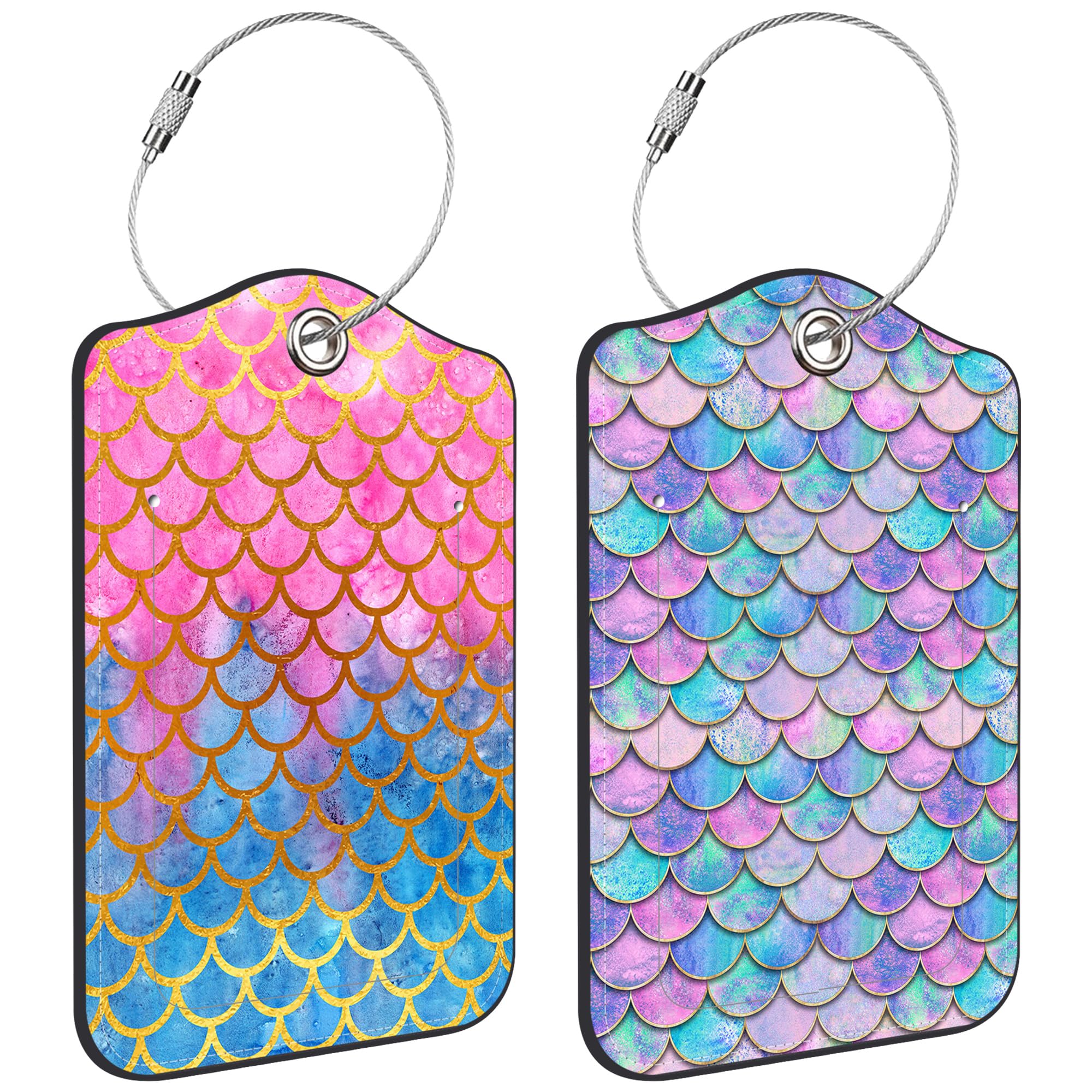 2 Pack Luggage Tags for Suitcases Mermaid Fish Scale Leather Luggage Tag, Identifiers with Privacy Name ID Label and Metal Loop for Men Women Travel|Luggage & Bags