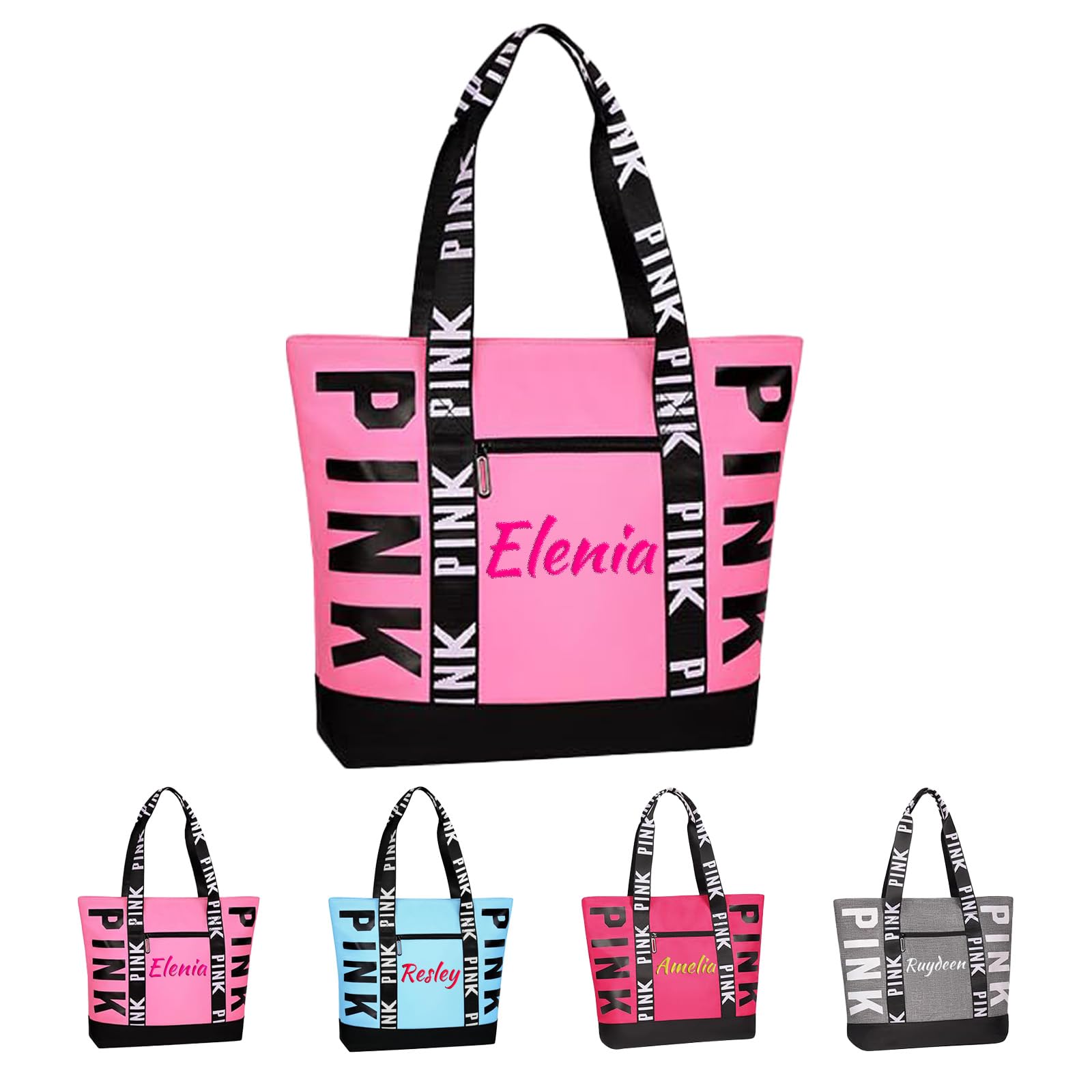 Zloris Personalized Pink Tote Bag Waterproof Travel Tote Bags for Women Large Beach Bag with Embroidered Name 17.3 * 4.3 * 13.8 IN|Luggage & Bags