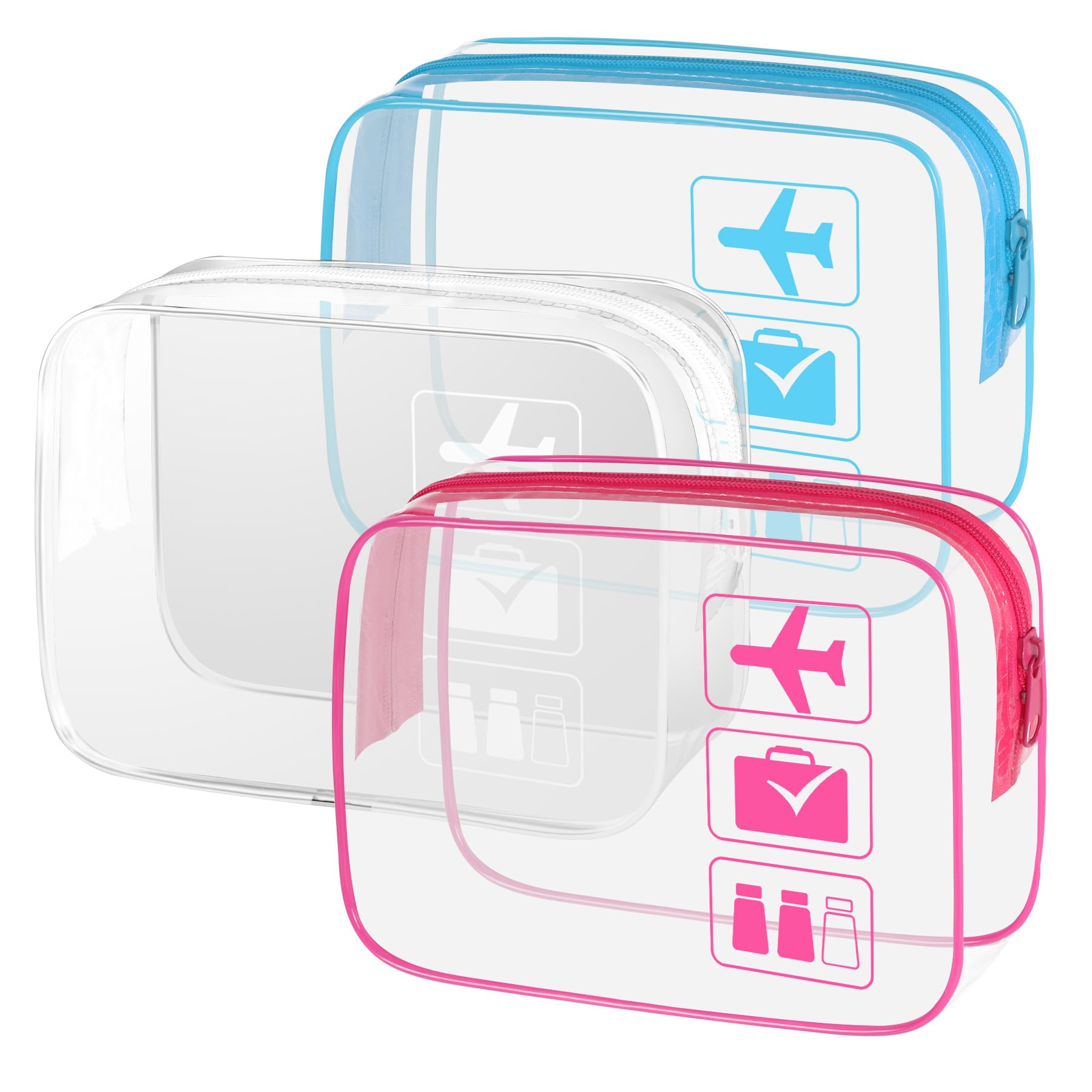 Sogiv 3Pcs TSA Approved Clear Travel Toiletry Bag, Unisex, White+Blue+Pink, 8.3 x 6.3 x 2.4 inches, Waterproof, Easy to Clean, Cosmetic Case, Travel|Luggage & Bags