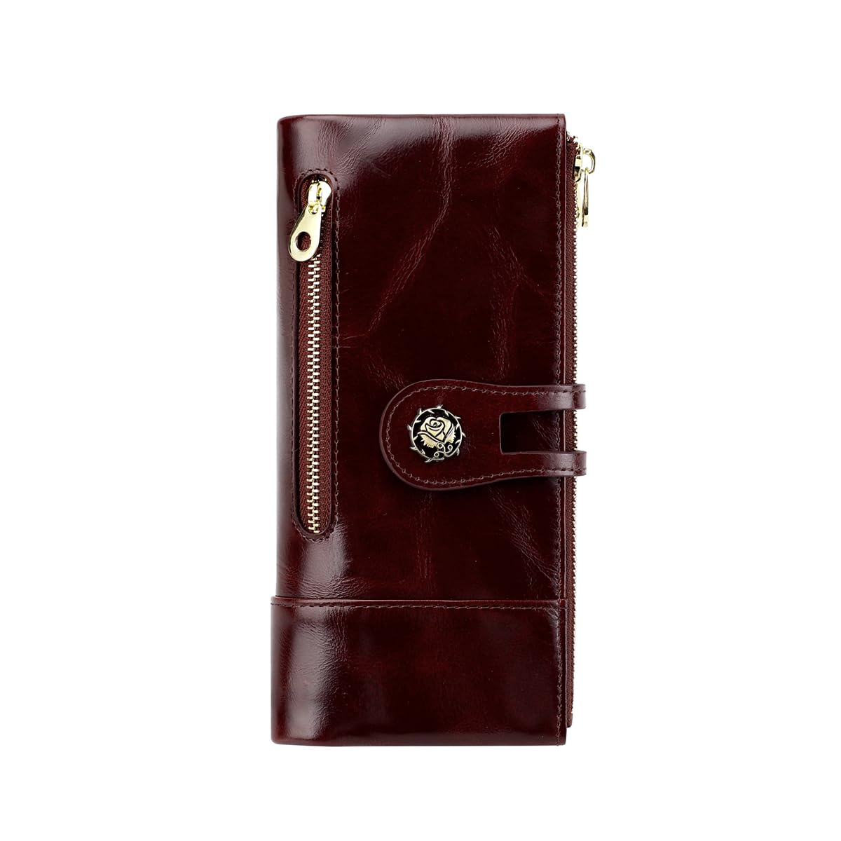 shuainiu Women's RFID Blocking Wallet Soft Leather Clutch Money Ladies Purse Slim Card Holder Organizer Zip Pocket (3013-Coffee)|Luggage & Bags