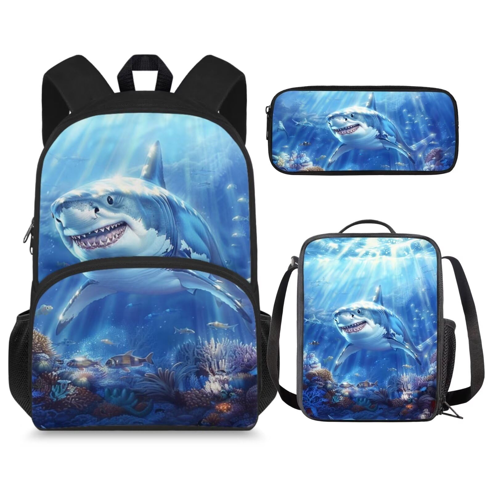 SCRAWLGOD Shark Backpack with Lunch Box Kids Boys 7-8/8-12/12-14 Sea Ocean Middle School Bookbag and Lunchbox Pencil Case 15 Inch Book Bags for|Luggage & Bags