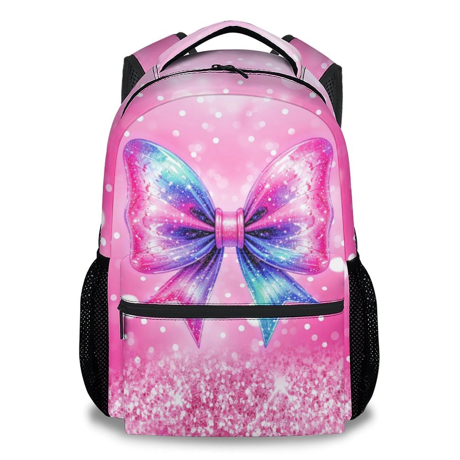 MEETUHONEY Bow Backpack - 17 Inch Cute Bowknot Backpacks for Girls - Portable Aesthetic Pink Bookbag for Elementary, Preschool|Luggage & Bags