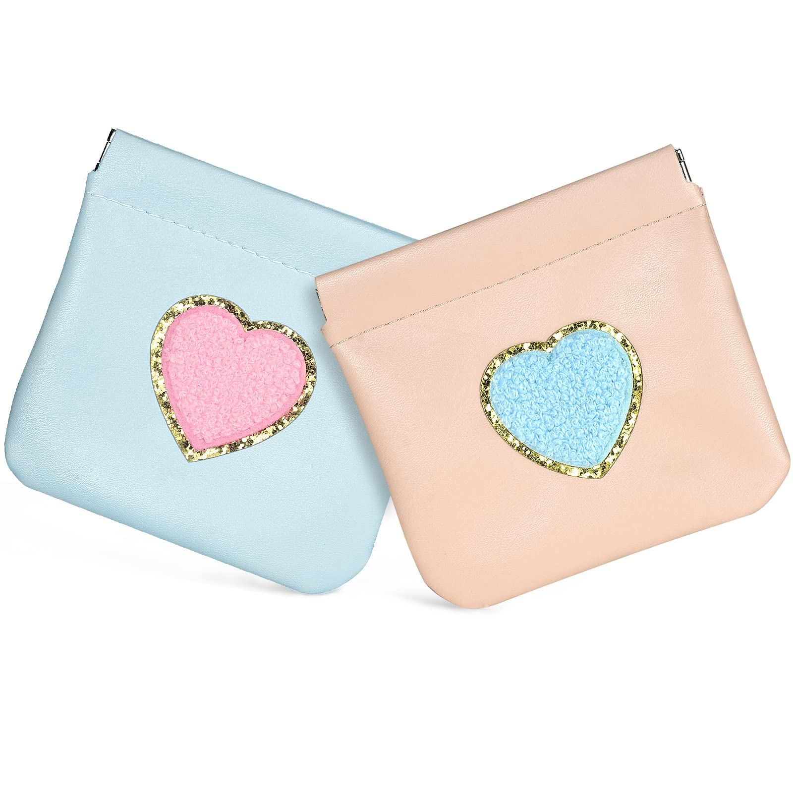 BYXEPA Coin Purse 2 Pack Change Purses Small PU Leather Cosmetic Bag Pocket Heart Makeup Organizer Cute Portable Waterproof Jewelry Travel Case for|Luggage & Bags