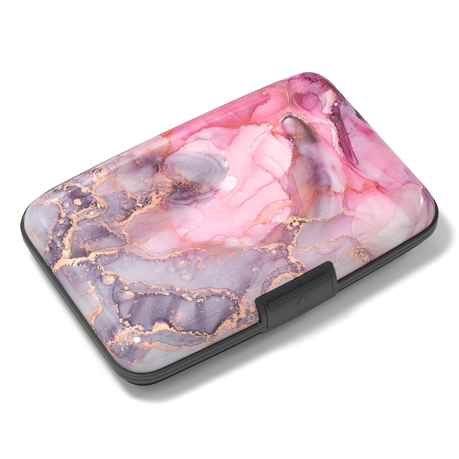 Rimilak Aluminuml Credit Card Holder, Mini Credit Card Wallet RFID Blocking Slim Metal Hard Case for Women Men, Pink Flow Mable|Luggage & Bags