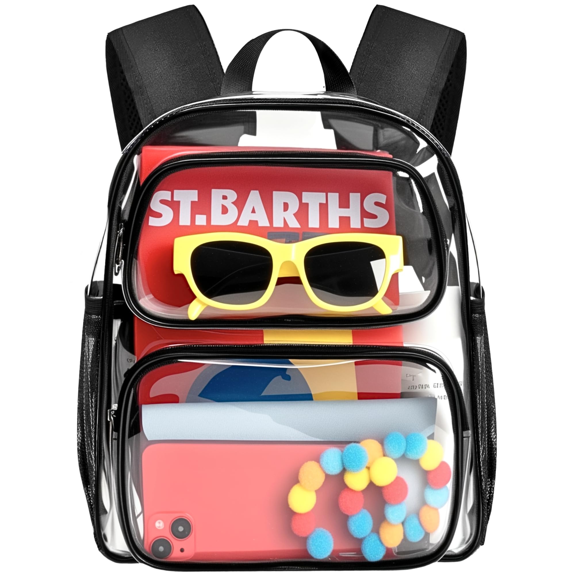 MAY TREE Clear Backpack Stadium Approved, 12x10x6 Inches Small Clear Bag with Padded Straps for Stadium Events, Concert, and Work, Black|Luggage & Bags