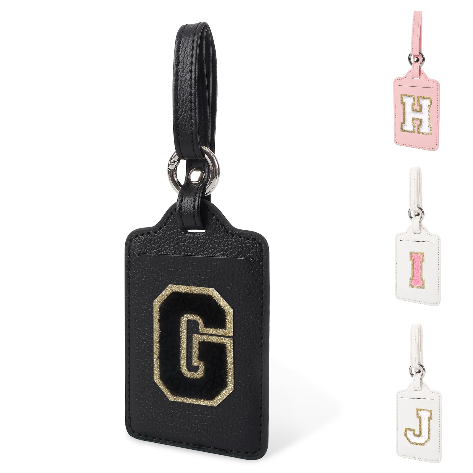 Initial Luggage Tag G for Suitcases TSA Approved, PU Leather Personalized Letter Luggage Tags with Privacy Cover Name Card, Black Cute Embroidered|Luggage & Bags