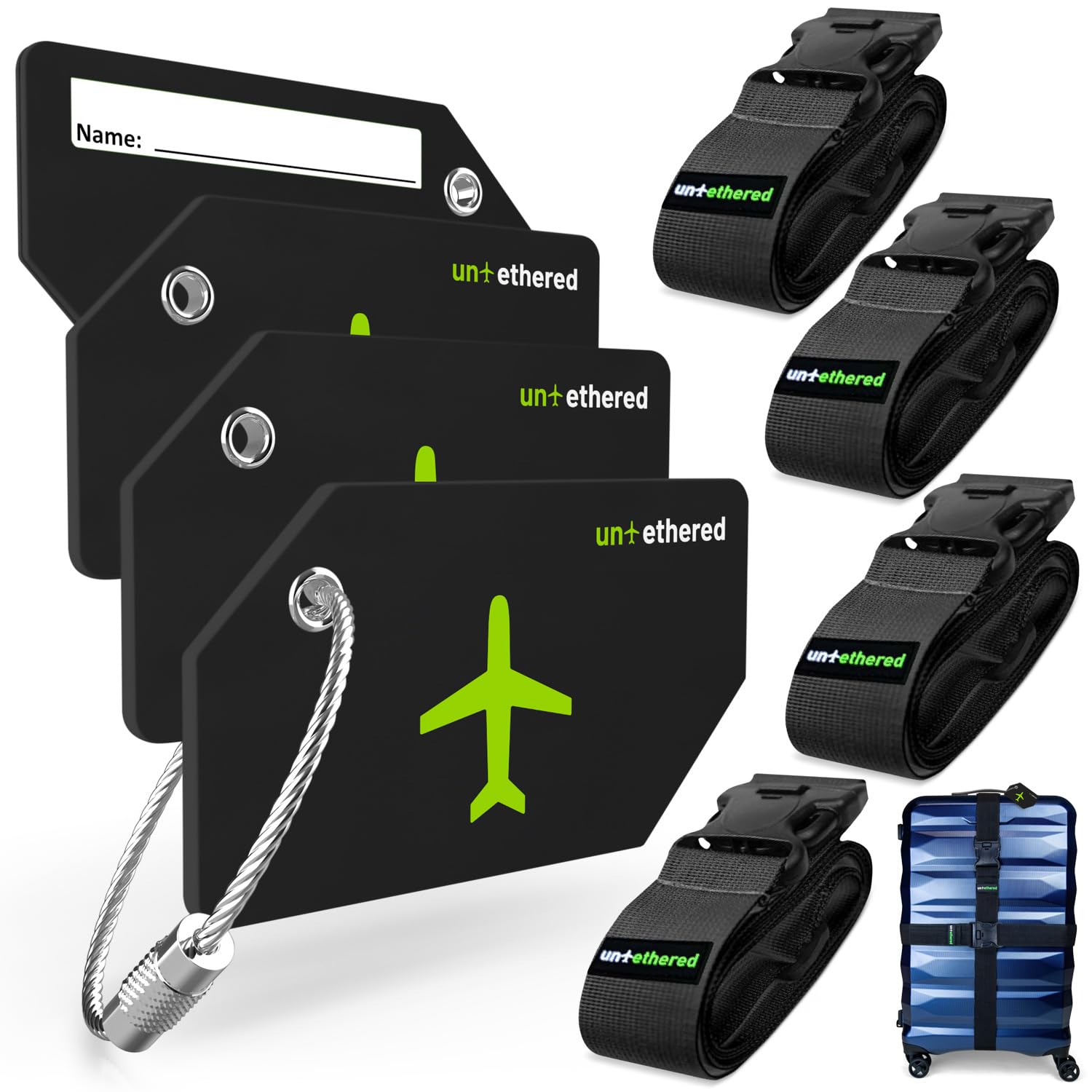 Untethered 4-Pack Luggage Tag Set | Durable Luggage Tags for Suitcases & Travel Bags | Bag Tag & Name ID Identifiers | Suitcase Tags for Easy Luggage|Luggage & Bags