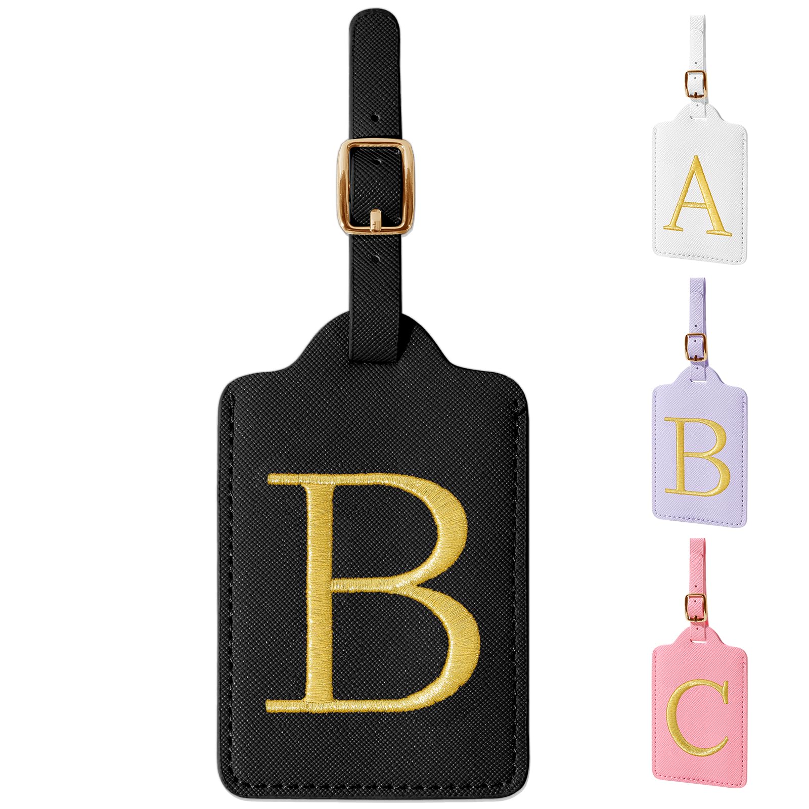 Personalized Initial Luggage Tags for Suitcase TSA Approved, Black Leather Cute Luggage Tag with Privacy Cover Name Card, Embroidered Custom Luggage|Luggage & Bags