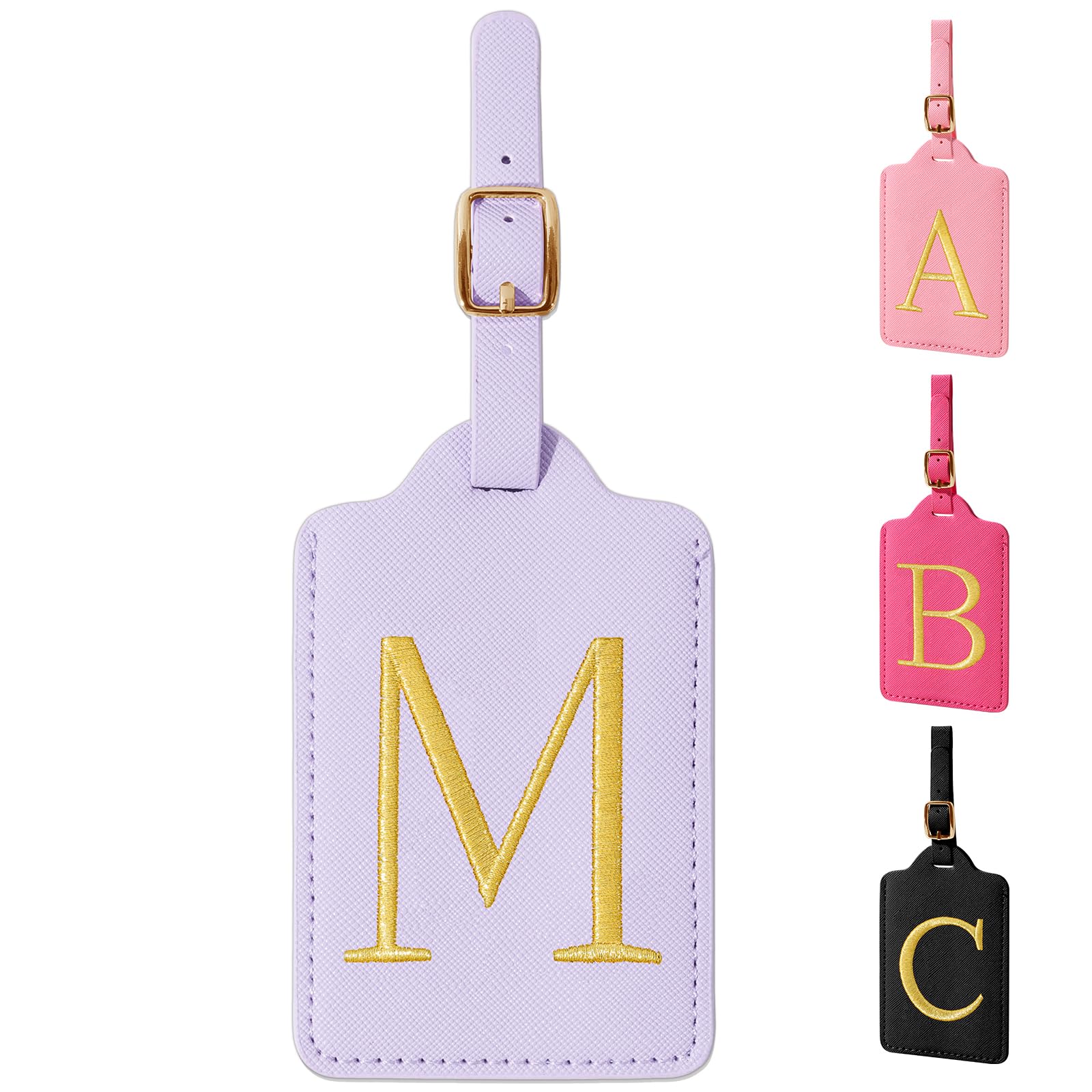 Personalized Initial Luggage Tags for Suitcase, Purple Leather Cute Luggage Tags with Privacy Cover Name Card, Embroidered Custom Monogrammed Luggage|Luggage & Bags