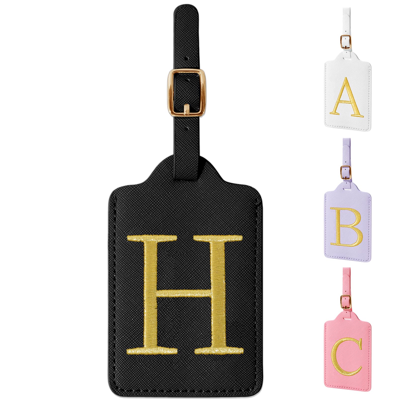Personalized Initial Luggage Tags for Suitcase TSA Approved, Black Leather Cute Luggage Tag with Privacy Cover Name Card, Embroidered Custom Luggage|Luggage & Bags