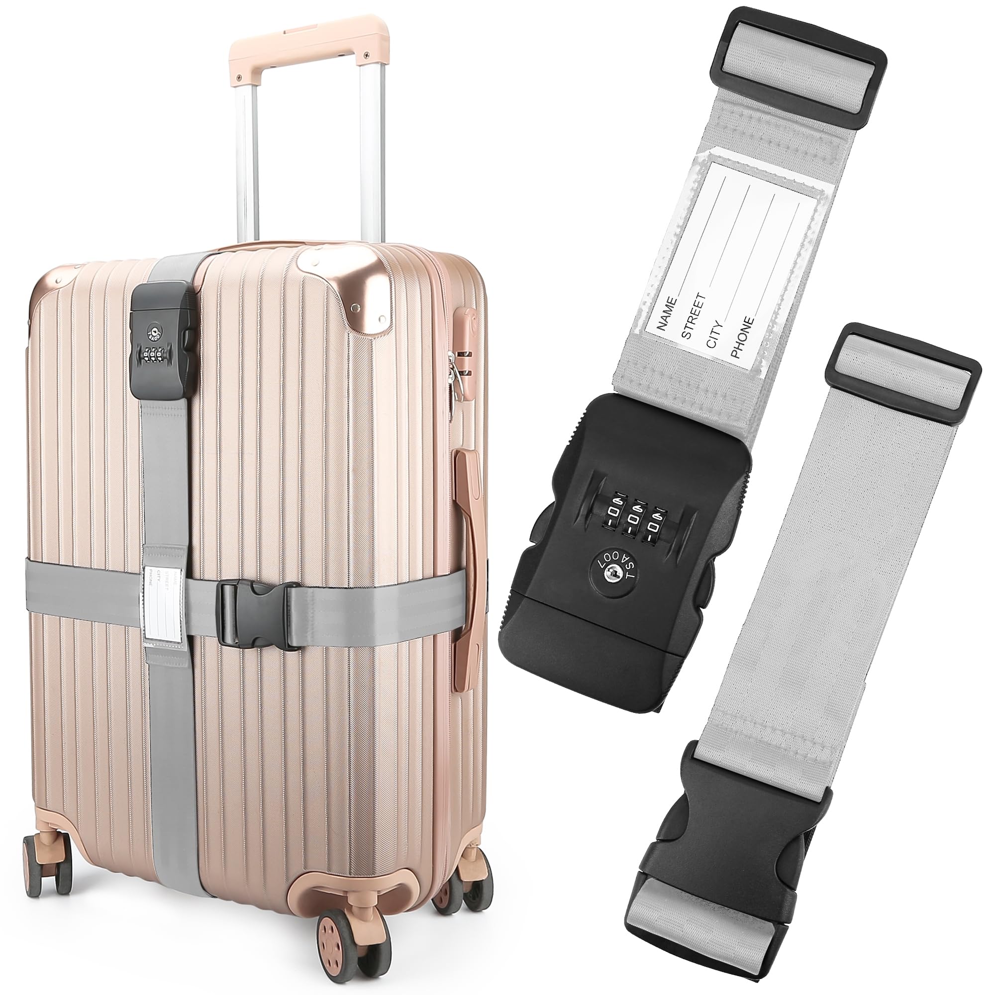 Luggage Straps, Grey TSA Approved Luggage Strap Belt with Combination Lock for Suitcases, 2 Pack Adjustable Heavy Duty Cross Suitcase Straps with Name|Luggage & Bags