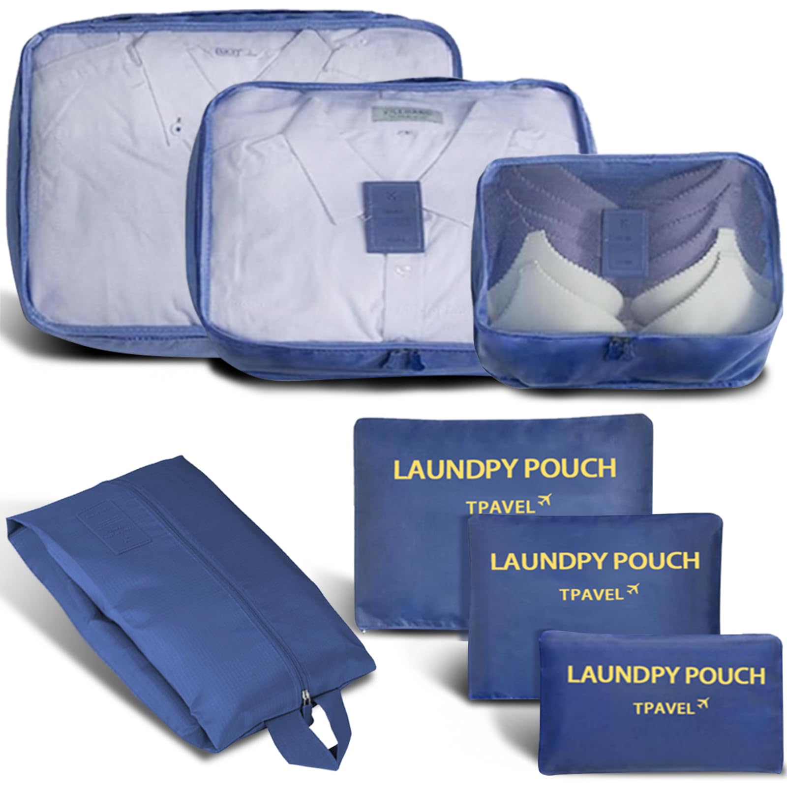INVODA 7 piece Multi-size Packing Cubes for Travel Suitcase Organizer Bags Lightweight Travel Bags (Navy Blue)|Luggage & Bags