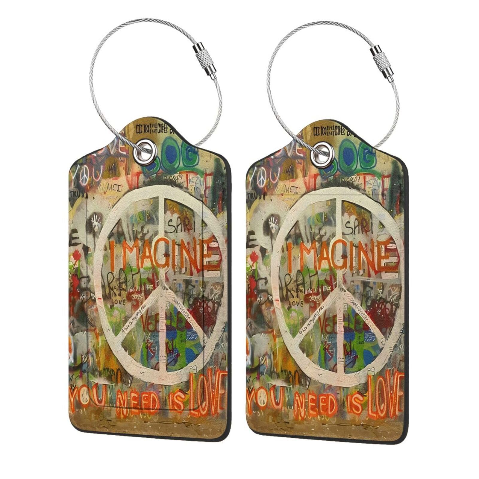 Luggage Tag Rectangle Peace Sign Graffiti All You Need is Love Cute Unique Leather Suitcase Tags Identifiers with Privacy Name Address Labels &|Luggage & Bags