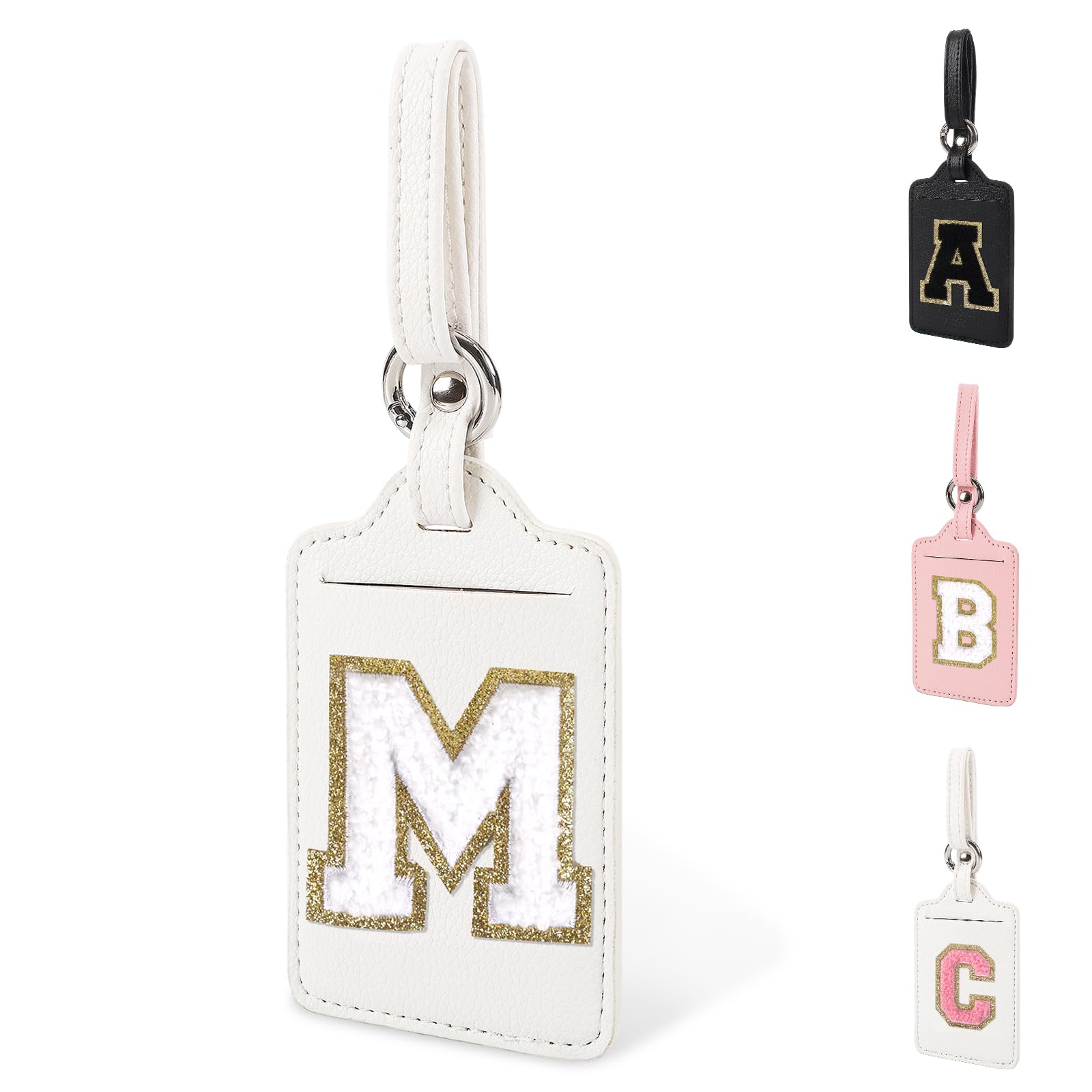 Initial Luggage Tags for Suitcases, Cute Chenille Letter Luggage Bag with Privacy Cover Name Card, PU Leather Travel Luggage Tags,Bag Tags for Men|Luggage & Bags