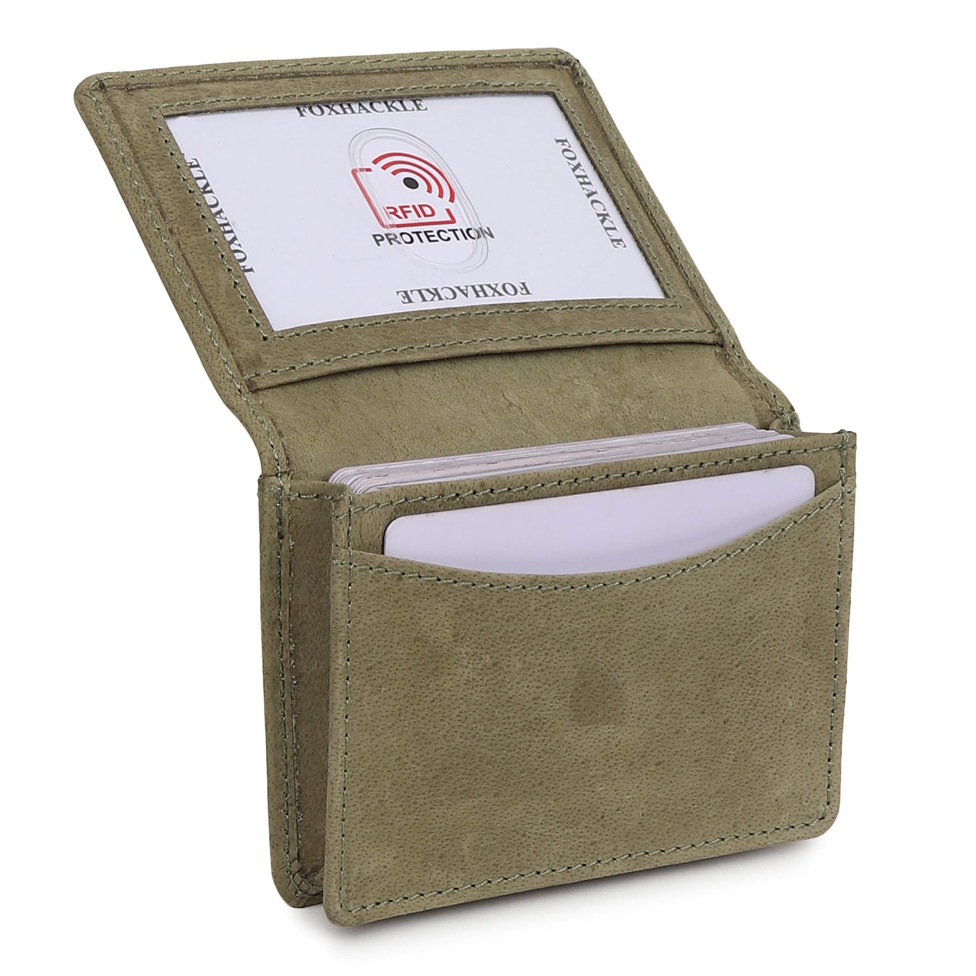 FOXHACKLE Leather Credit Card Holder For Men and Women, Small RFID Blocking Bifold Wallet (With ID Slot, Parrot Green)|Luggage & Bags