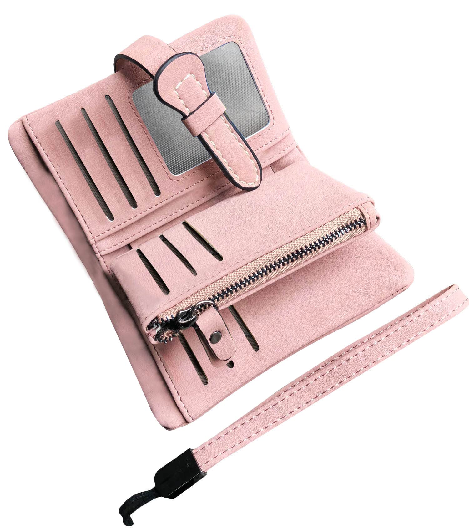 AOXONEL Women's Small Bifold Leather wallet Rfid blocking Ladies Wristlet with Card holder id window Coin Purse|Luggage & Bags