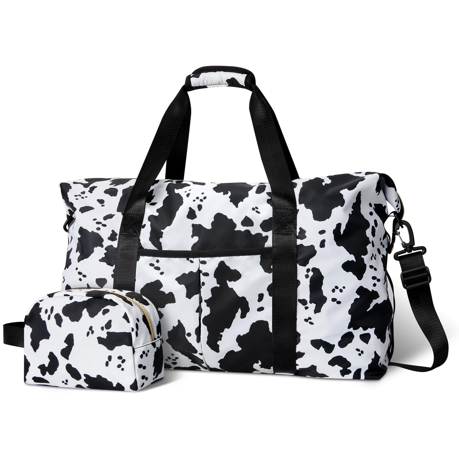 Tuwubi Travel Duffle Bag, Gym Bag for Women, Weekender Bags, 45L Travel Duffel Bags with Small Pouch - Cow Print|Luggage & Bags