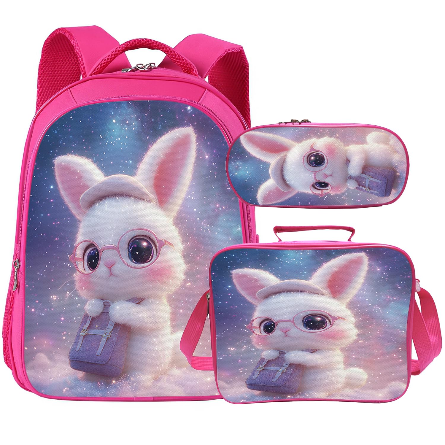 Arevigh Bunny School Backpack 3 Piece Set Backpack Lunch Bag Pencil Case Waterproof Fabric for School Gifts for Students Kids Toddler Boys Girls|Luggage & Bags