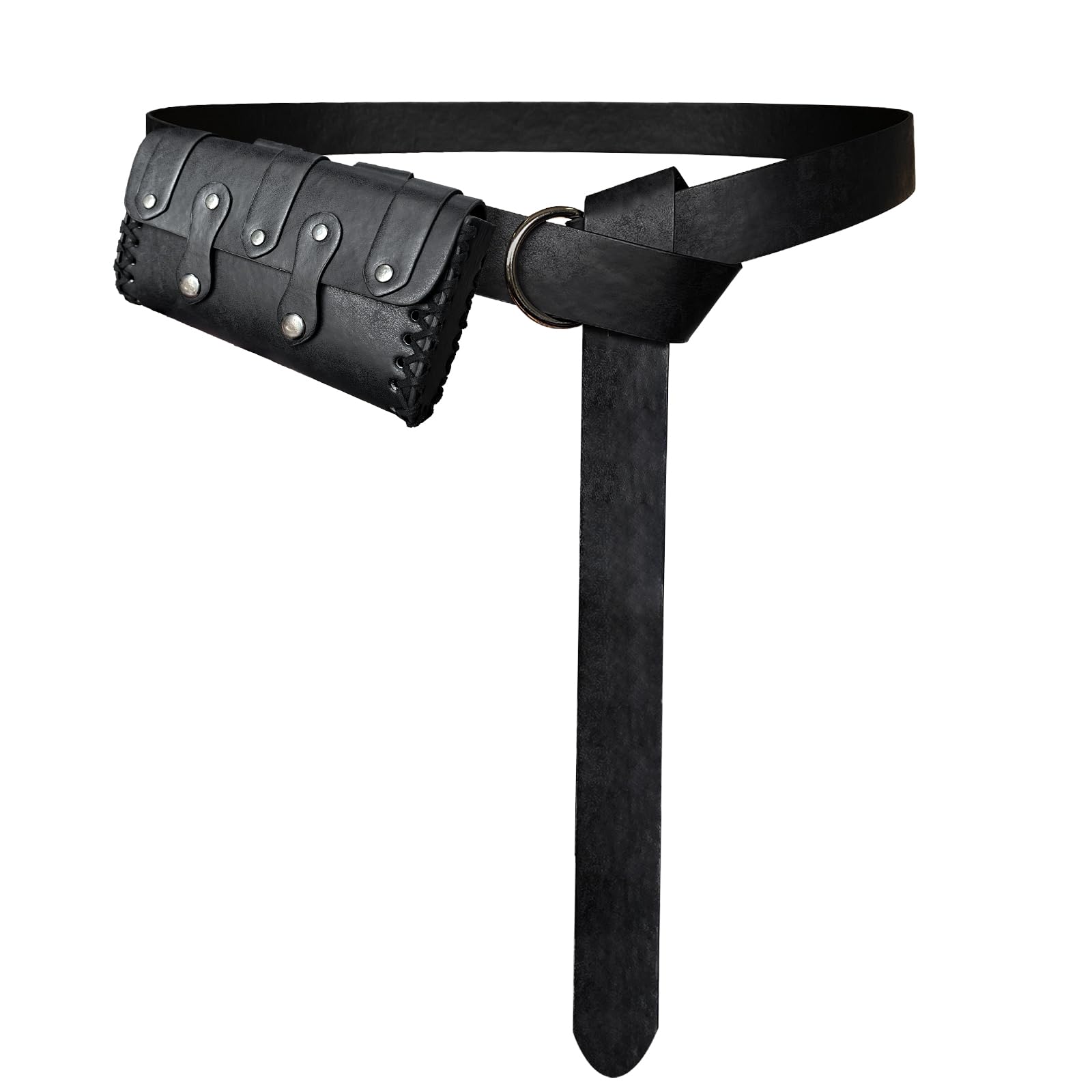 HiiFeuer Medieval Faux Leather Belt Bag with O Ring Belt, Renaissance Cosplay Belt Pouch, Portable Phone Bag for Ren Faire (Black A)|Luggage & Bags