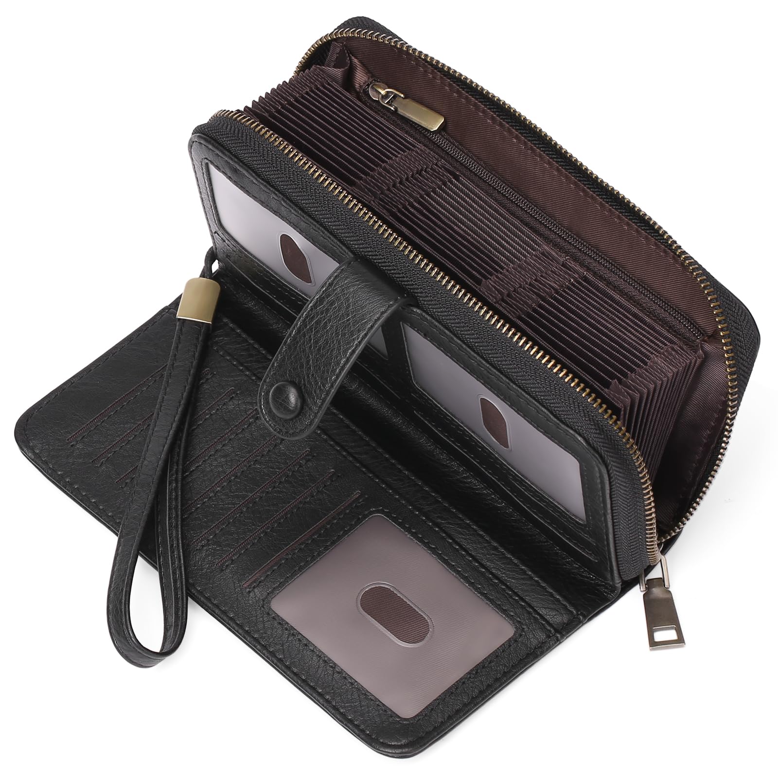 GAEKEAO Leather Credit Card Holder Wallet for Women RFID Blocking Large Capacity Bifold Zipper Card Case Organizer with Wristlet 45 Slots|Luggage & Bags
