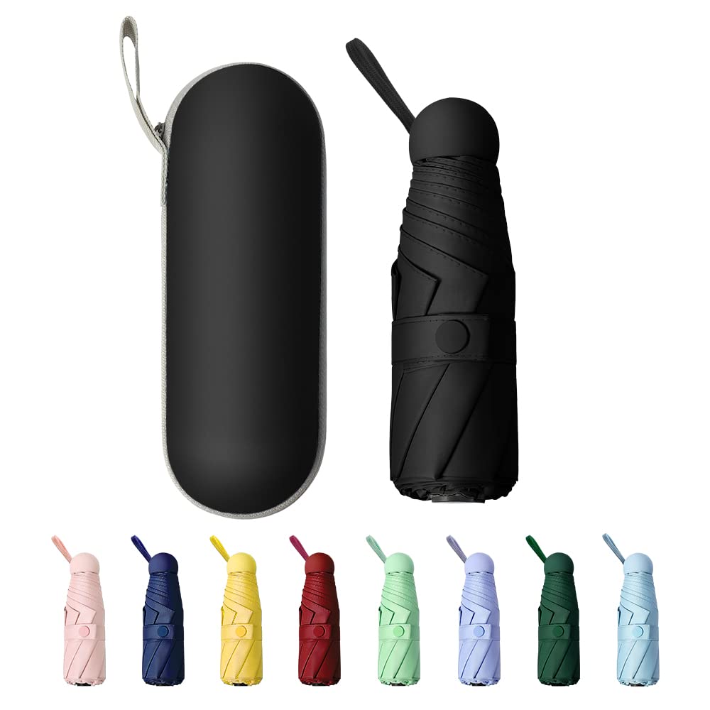 TIME LOVER Mini Windproof Folding Travel Umbrella, Sun & Rain Umbrellas, Compact Portable for Women Men (Black)|Luggage & Bags
