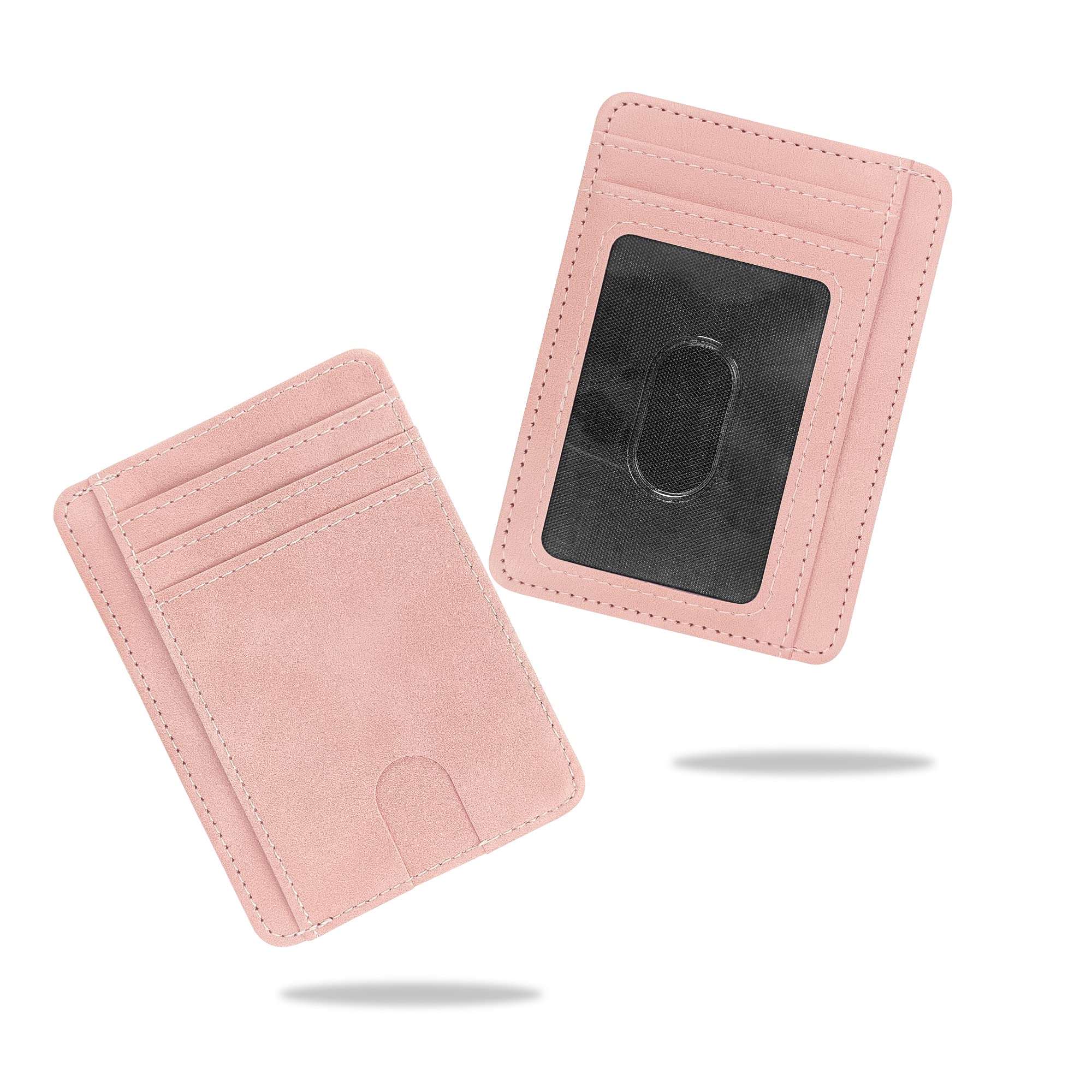 CONISY Slim Credit Card Holder for Women, Thin Front Pocket Leather Mini Wallet with RFID Blocking (Pink)|Luggage & Bags